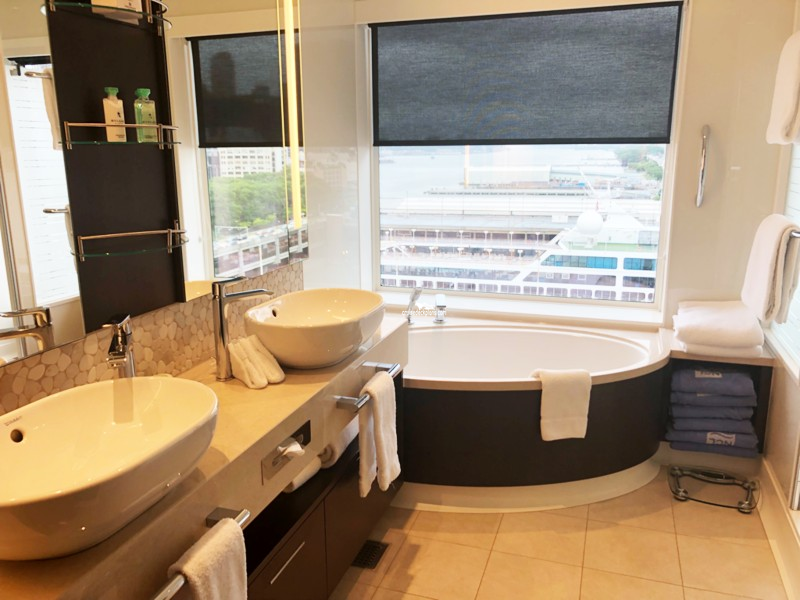 Butler Service / Concierge Service / Priority Check In / Priority Debarkation / Priority Tender Boarding / Dining in the Stateroom / Welcome Champagne / Exclusive Lounge / Exclusive Pool / Exclusive Outdoor Lounge / Thick Cotton Robes / Pillow Menu / Espresso & Cappuccino machine / Special suite menus / Bliss collection pillow-top mattress / Treats delivered to door every night / Courtyard valet / Escort to suite /