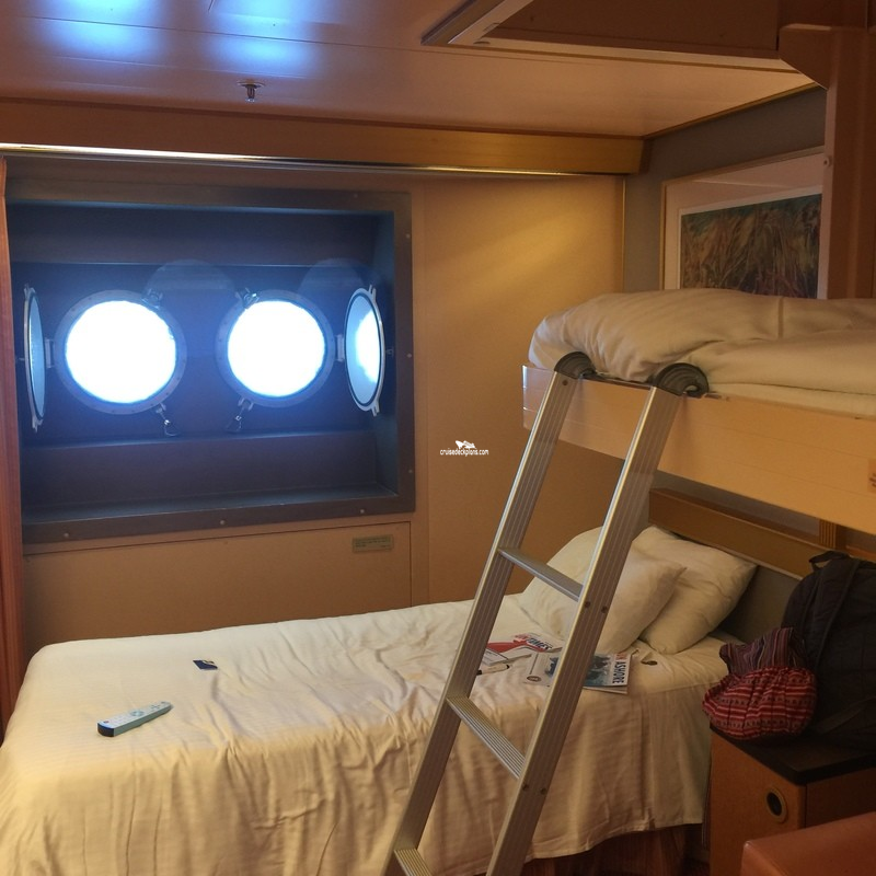 - Cabins 2444 and 2445 have single bed with upper berth and picture windows