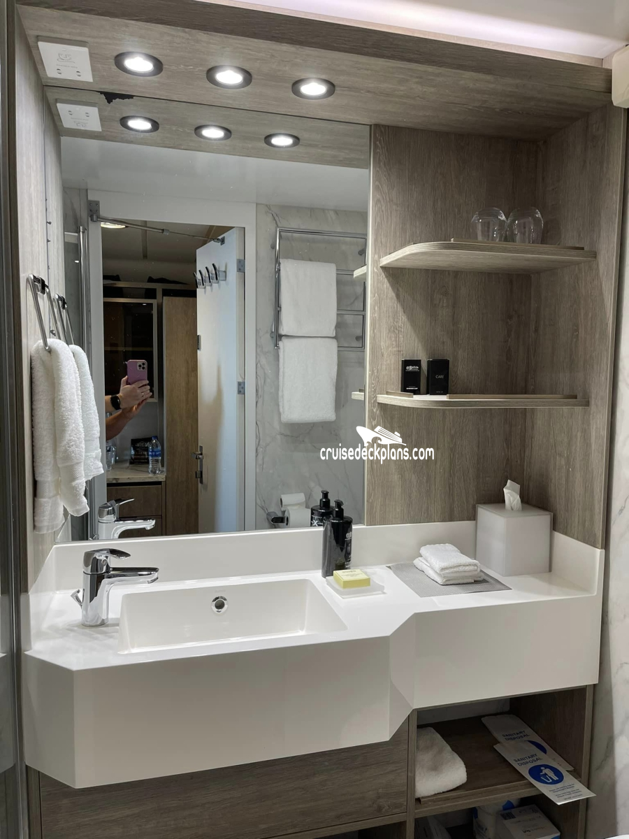 Priority Check In / Priority Luggage Delivery / Priority Debarkation / Complimentary Shoe Shine / Exclusive Full Breakfast Restaurant / Exclusive Dinner Restaurant / Thick Cotton Robes / Pillow Menu / Personal spa concierge / Celebrity eXhale custom premium mattresses / Interactive Samsung flat-screen television system / Complimentary tote bag / Hansgrohe massaging shower panel / Daily delivery of bottled water (DISCONTINUED) and tea / Upgraded room service menu / On-demand wellness programing / Complimentary access to the Persian Gardens and Relaxation room / Aromatherapy diffuser / Additional bathroom amenities / Slippers / Oversized 100% cotton towels /