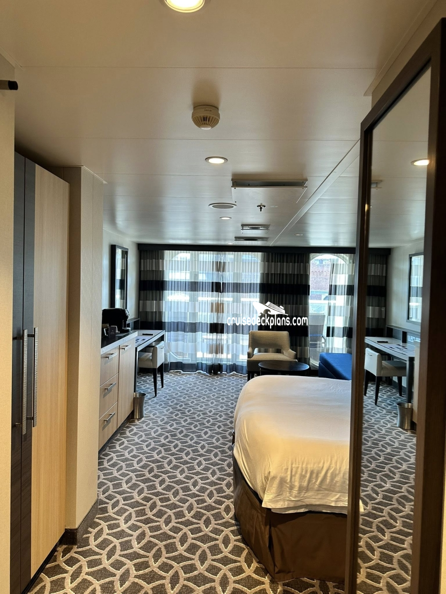 Ovation of the Seas Junior Suite cabin location, stateroom cabin videos, stateroom cabin pictures, floor plans, diagrams, stateroom features and perks. Cruisedeckplans.com also provides links to actual stateroom cabin pictures and videos on this page. You can see details and floor plans for all of Ovation of the Seas's different stateroom cabin categories on the NEW cabins page.