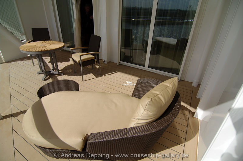 Butler Service / Priority Check In / Priority Debarkation / Priority Tender Boarding / Dining in the Stateroom / Afternoon Canapes / Afternoon Tea / Welcome Champagne / Exclusive Lounge / Exclusive Dinner Restaurant / Thick Cotton Robes / Pillow Menu / Dedicated private restaurant Luminae / Access to the exclusive lounge Michaels Club / Reserved theatre seating on Evening Chic nights / Complimentary daily in-suite espresso and cappuccino / Luxury bath amenities / Oversized 100% cotton bath towels / Spacious veranda Hansgrohe showerhead / Bottled water on Embarkation Day /