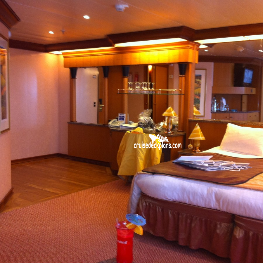 Carnival Pride Junior Suite cabin location, stateroom cabin videos, stateroom cabin pictures, floor plans, diagrams, stateroom features and perks. Cruisedeckplans.com also provides links to actual stateroom cabin pictures and videos on this page. You can see details and floor plans for all of Carnival Pride's different stateroom cabin categories on the NEW cabins page.