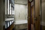 - Marbled bath with double vanity, separate shower, full size bath