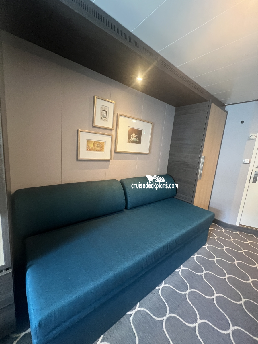 Some balconies up to 80 square feet. Category 1C (was D1) and 2C (was D2) has larger balconies. Some cabins are laid out with the bed near the balcony, others have the sofa near the balcony. Triple and Quad cabins have the sofa near the balcony. Layout changes every other cabin. Handicap cabins may have small chair bed instead of sofa bed. If there is more than two booked in cabin the chair bed is not recommended for adults.