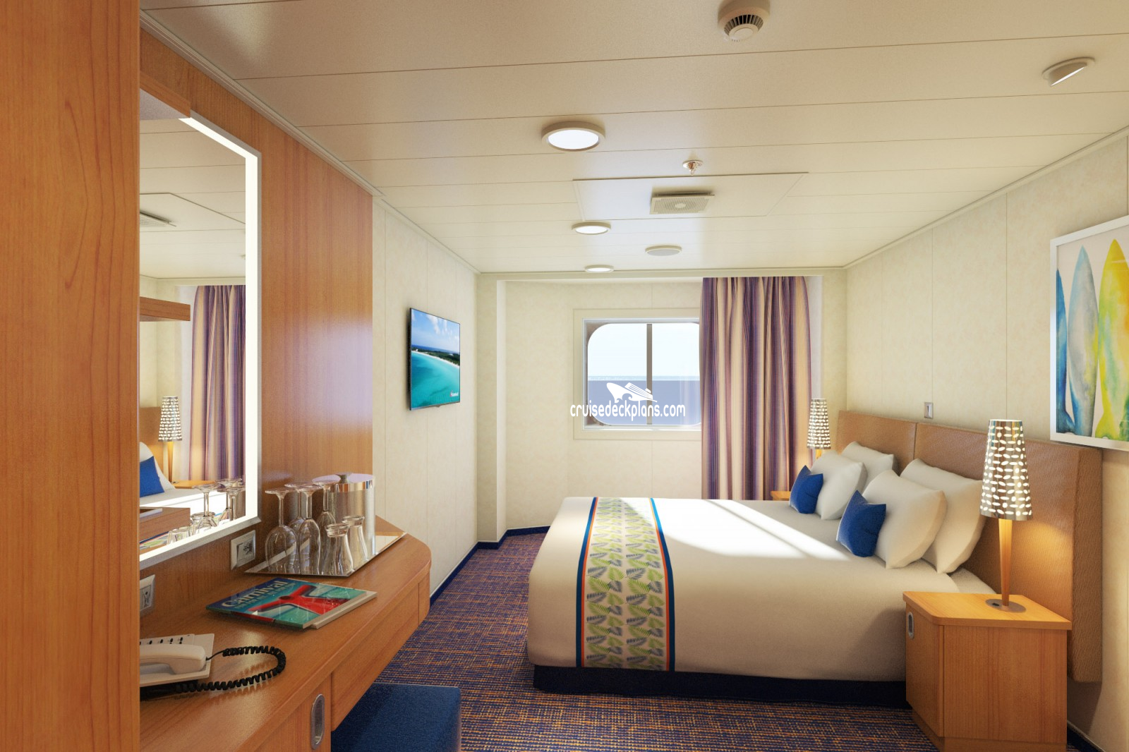 Carnival Horizon Interior with Picture Window cabin location, stateroom cabin videos, stateroom cabin pictures, floor plans, diagrams, stateroom features and perks. Cruisedeckplans.com also provides links to actual stateroom cabin pictures and videos on this page. You can see details and floor plans for all of Carnival Horizon's different stateroom cabin categories on the NEW cabins page.