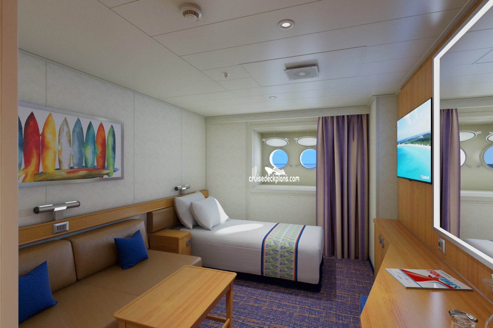 Click on a category below to go to that page. Stateroom cabin categories are simply the way that Carnival groups the different types of staterooms (cabins). You can see details and floor plans for all of the categories on Carnival Sunrise on this page.