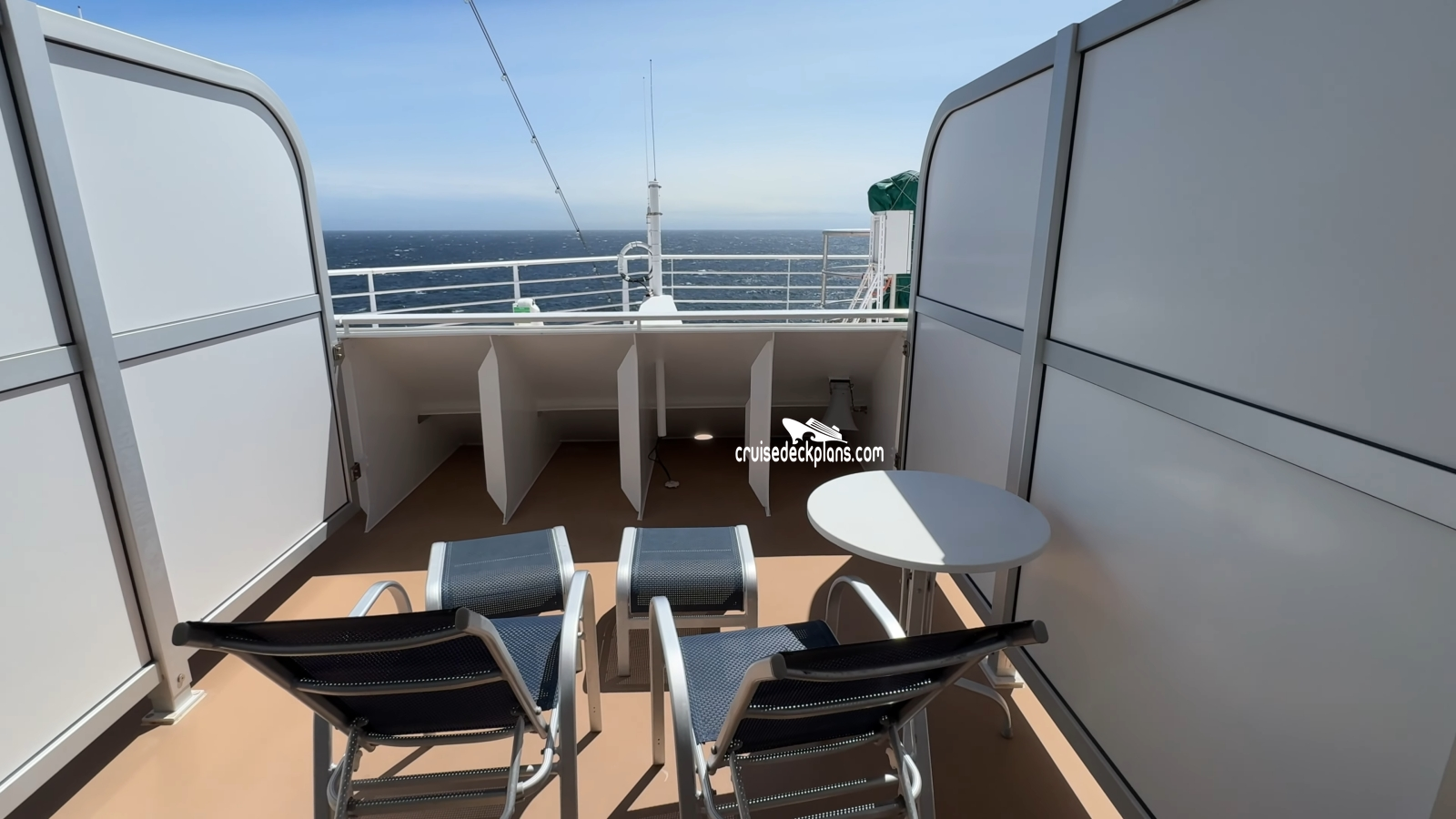 IMPORTANT NOTE: Category DV, DW, DZ have obstructed views due to solid steel railings or tops of lifeboats. Category DZ upper deck balconies can only be used while in port. When upper berth or sofa bed is used it will block balcony. Cabin sizes with balcony ranges from 233 to 291 square feet. Category DV is 253 square feet. Category DZ is 263 to 291 square feet including balcony. Category DB, DC, DD, DE, DF, DW are 233 square feet. Category DA is 249 square feet.