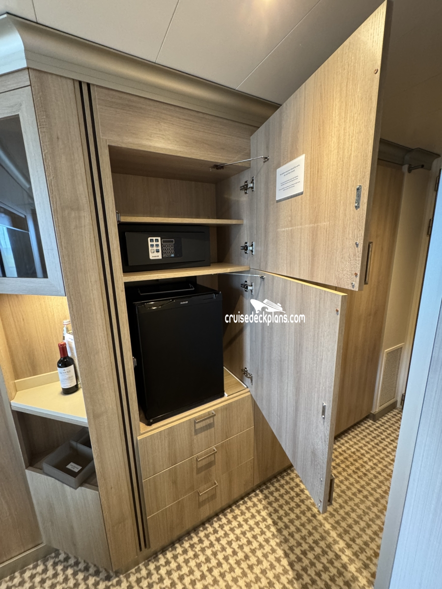 - Multi-channel music, mini-fridge with items for purchase, safety deposit box, phone