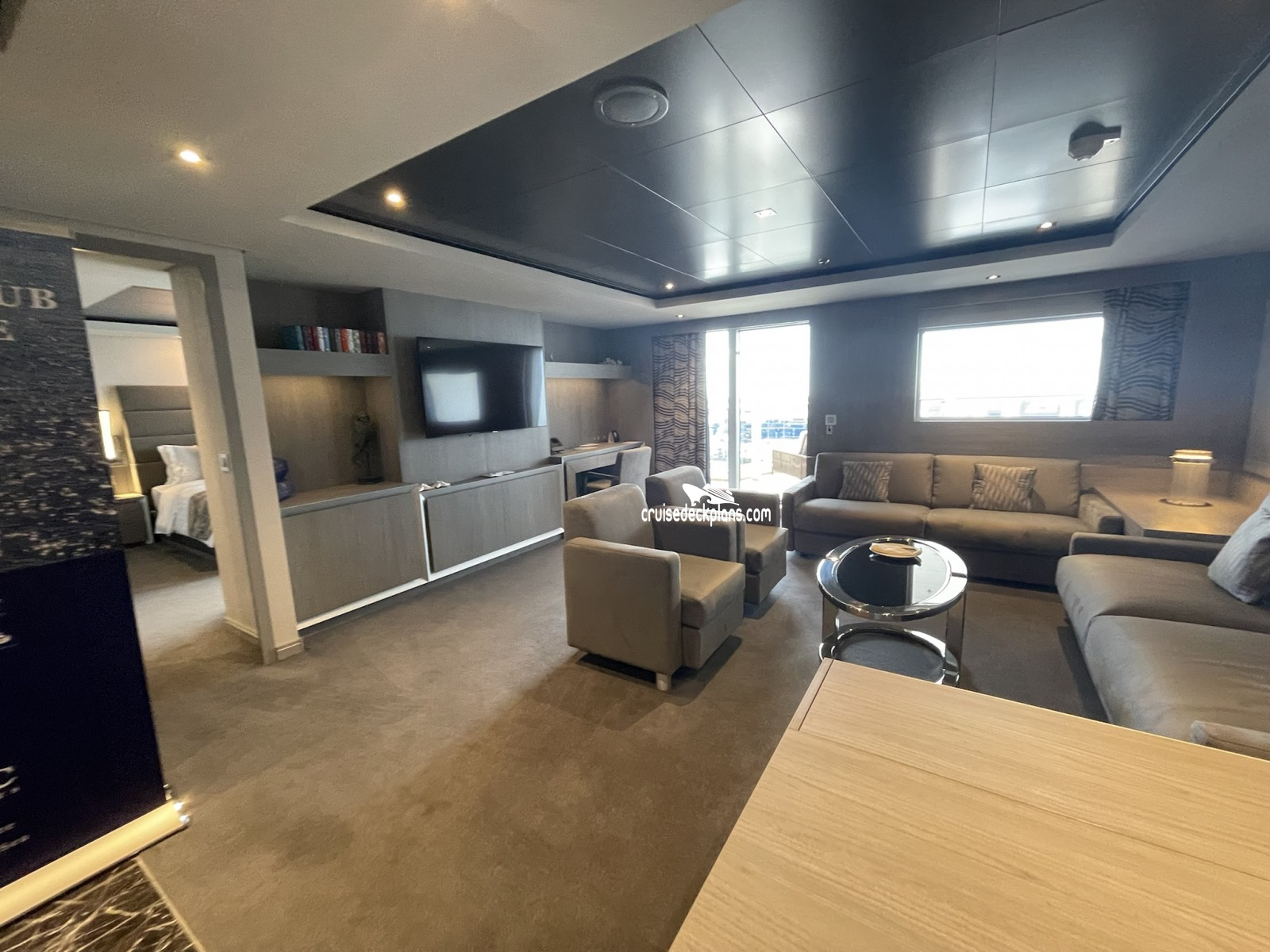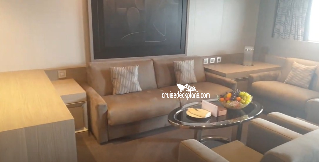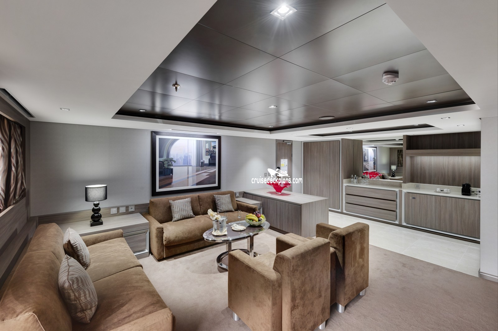 MSC Seashore Yacht Club Royal Suite cabin location, stateroom cabin videos, stateroom cabin pictures, floor plans, diagrams, stateroom features and perks. Cruisedeckplans.com also provides links to actual stateroom cabin pictures and videos on this page. You can see details and floor plans for all of MSC Seashore's different stateroom cabin categories on the NEW cabins page.