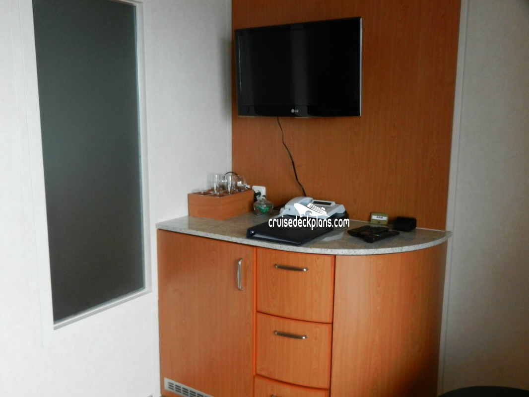 Category XJ - Junior Suite is 180 square feet plus 48 square foot balcony. The double bed cannot be seperated. The sitting area has full-size convertible sofa bed.