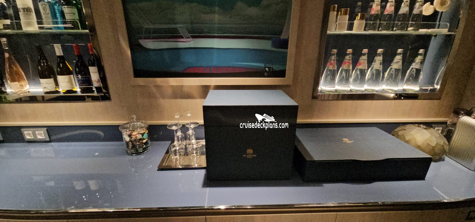 Butler Service / Concierge Service / Priority Check In / Priority Luggage Delivery / Priority Debarkation / Priority Tender Boarding / Exclusive Lounge / Exclusive Dinner Restaurant / Priority Dining Reservations / Exclusive Pool / Exclusive Outdoor Lounge / Pillow Menu / 24-hour room service / Welcome package (Prosecco and chocolate box) / Access to Top Exclusive Solarium / Bathrobe and slippers in cabin / Access to Thermal area / 40% off dedicated Spa prepaid package / 10% off Spa treatments purchased on board / Premium Extra Drink Package / Premium Internet Package / Luggage packing/unpacking / Newspaper delivery upon request / MSC for ME wristband / Gourmet restaurant for breakfast, lunch and dinner / Panoramic Top Sail Lounge with bar /