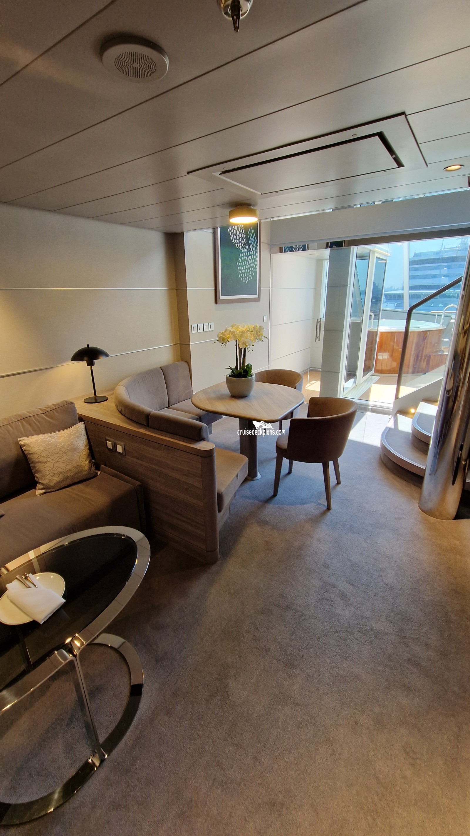 Listing of decks with Duplex Suite cabins and category codes available on those decks:MSC Euribia Duplex Suite pictures