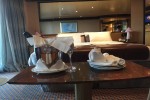 Butler Service / Priority Check In / Priority Debarkation / Afternoon Canapes / Priority Dining Reservations / Thick Cotton Robes / Pillow Menu / All benefits of premium cabins / Free service in your cabin / Extra 10% discount on your next cruise / Personal valet / Restaurant reserved exclusively for Suite guests / All-day access to the spa / Bottle of Ferrari sparkling wine / Jacuzzi, baths salts, bath robe and slippers / Choice of pillows (pillow menu) /