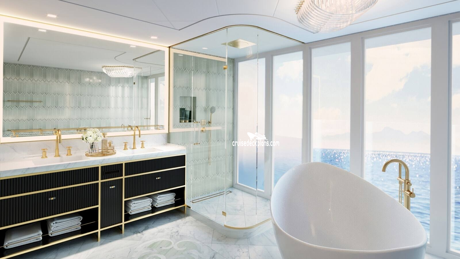 Disney Treasure Concierge 2-Story Royal Suite cabin location, stateroom cabin videos, stateroom cabin pictures, floor plans, diagrams, stateroom features and perks. Cruisedeckplans.com also provides links to actual stateroom cabin pictures and videos on this page. You can see details and floor plans for all of Disney Treasure's different stateroom cabin categories on the NEW cabins page.