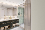 - 3 full bathrooms, including 2 main bathrooms with double sinks and a Guest bathroom with a shower (one of the main bathrooms features a bathtub with a rain shower and the other has a walk-in rain shower)