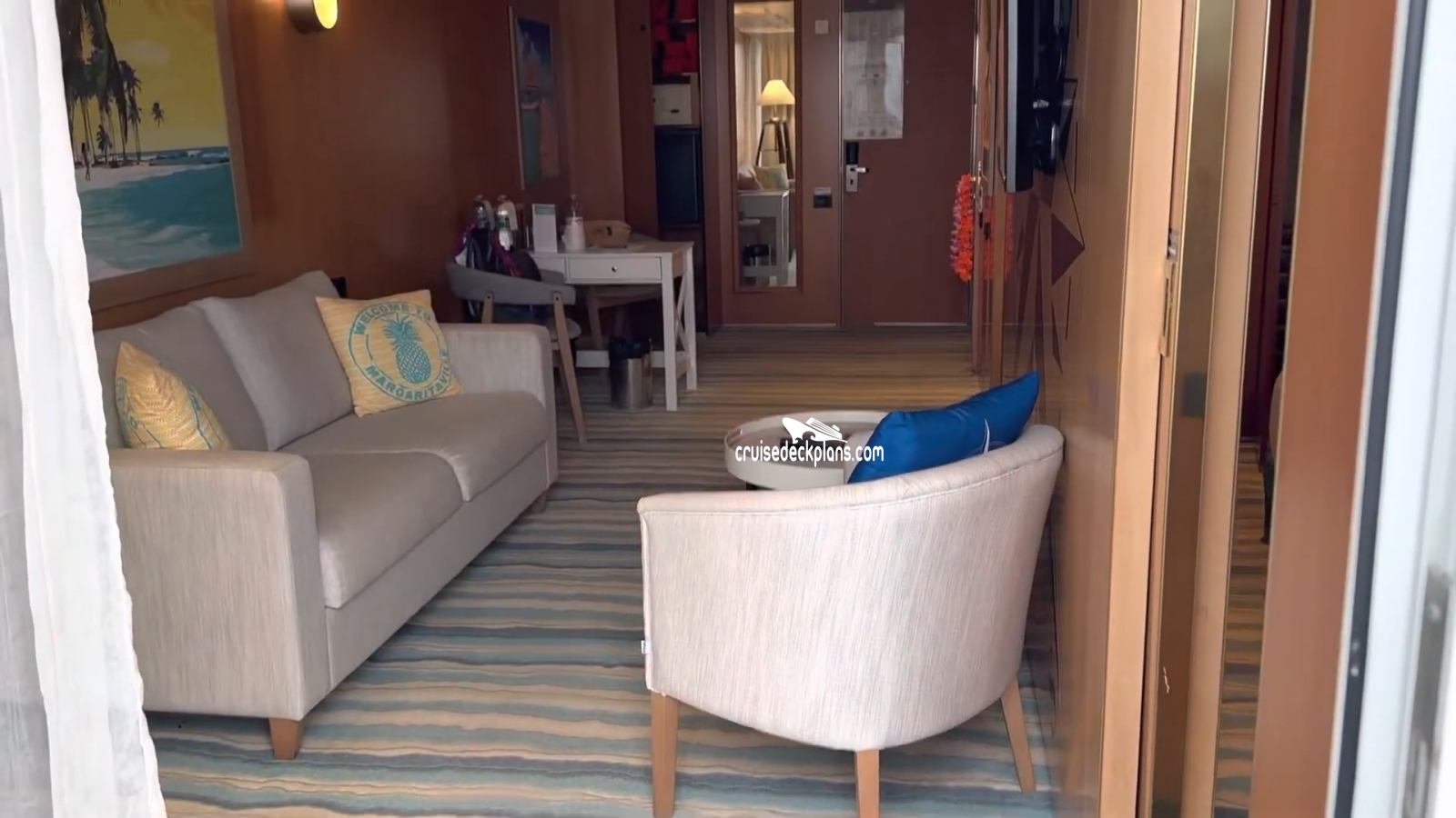 Scroll over cabin (stateroom) tiles below to click and watch videos. Cruisedeckplans.com shows up to 10 of the most recent videos added to our collection on this page. Be sure to click the link in the section below to see other cabins we have videos for. The date shown is the date video was published. Use this to see decor changes.