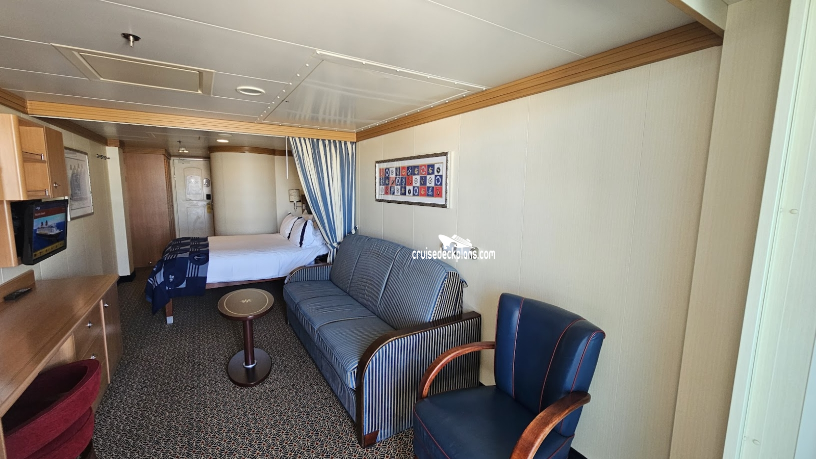 Sleeps: 4 to 5. Deck 5 category 4E Staterooms are 203 square feet and have expanded balconies that are twice as big as normal balconies and open to the views from above.
