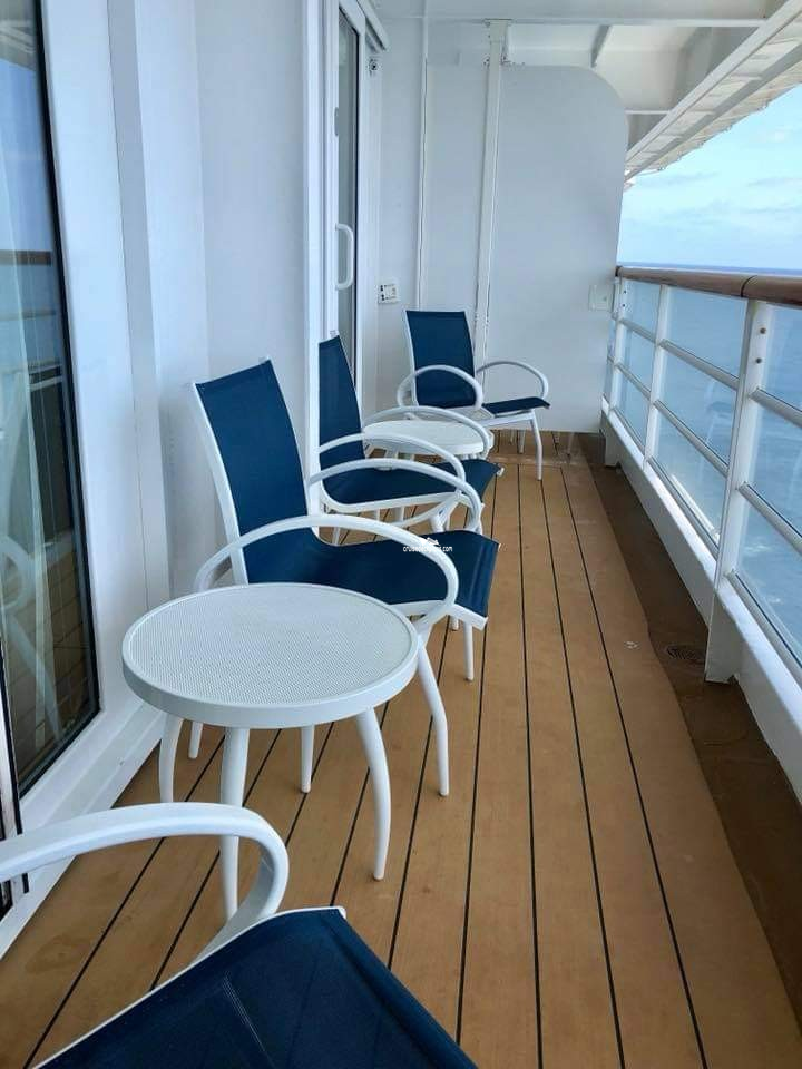 Cabin size includes balcony. All staterooms have tub & shower, remote-control color TV, closet safe, in-room safe, hair dryer, phone with voice-mail messaging, and individual climate control.