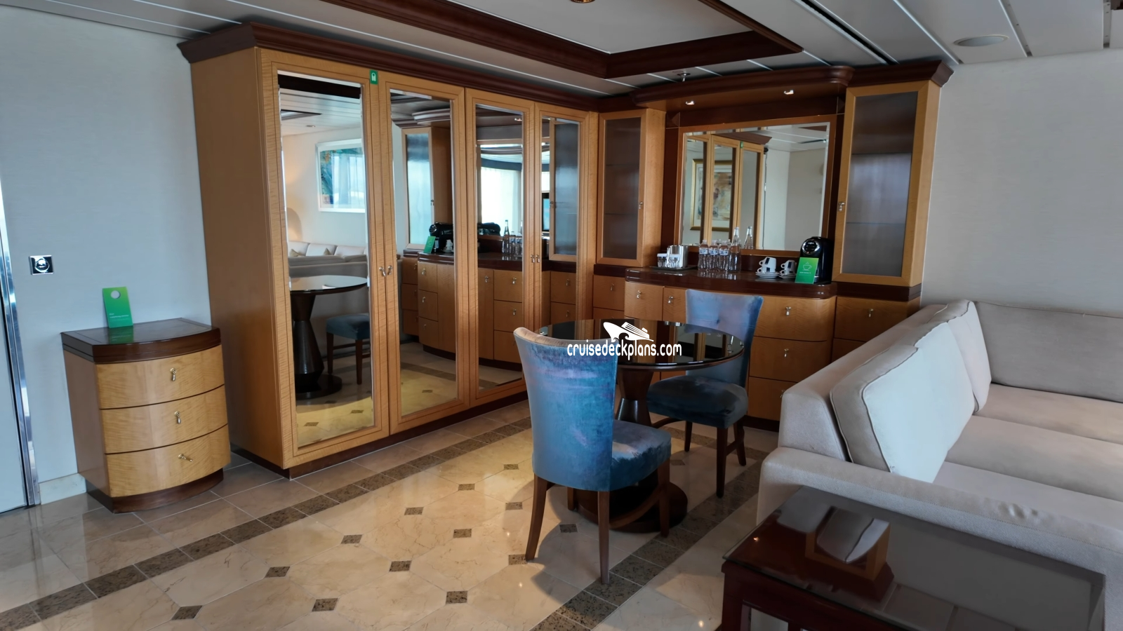 Jewel of the Seas Owners Suite cabin location, stateroom cabin videos, stateroom cabin pictures, floor plans, diagrams, stateroom features and perks. Cruisedeckplans.com also provides links to actual stateroom cabin pictures and videos on this page. You can see details and floor plans for all of Jewel of the Seas's different stateroom cabin categories on the NEW cabins page.