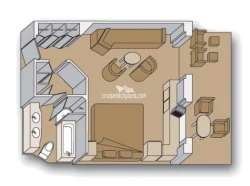 Nieuw Amsterdam Neptune Suite cabin location, stateroom cabin videos, stateroom cabin pictures, floor plans, diagrams, stateroom features and perks. Cruisedeckplans.com also provides links to actual stateroom cabin pictures and videos on this page. You can see details and floor plans for all of Nieuw Amsterdam's different stateroom cabin categories on the NEW cabins page.