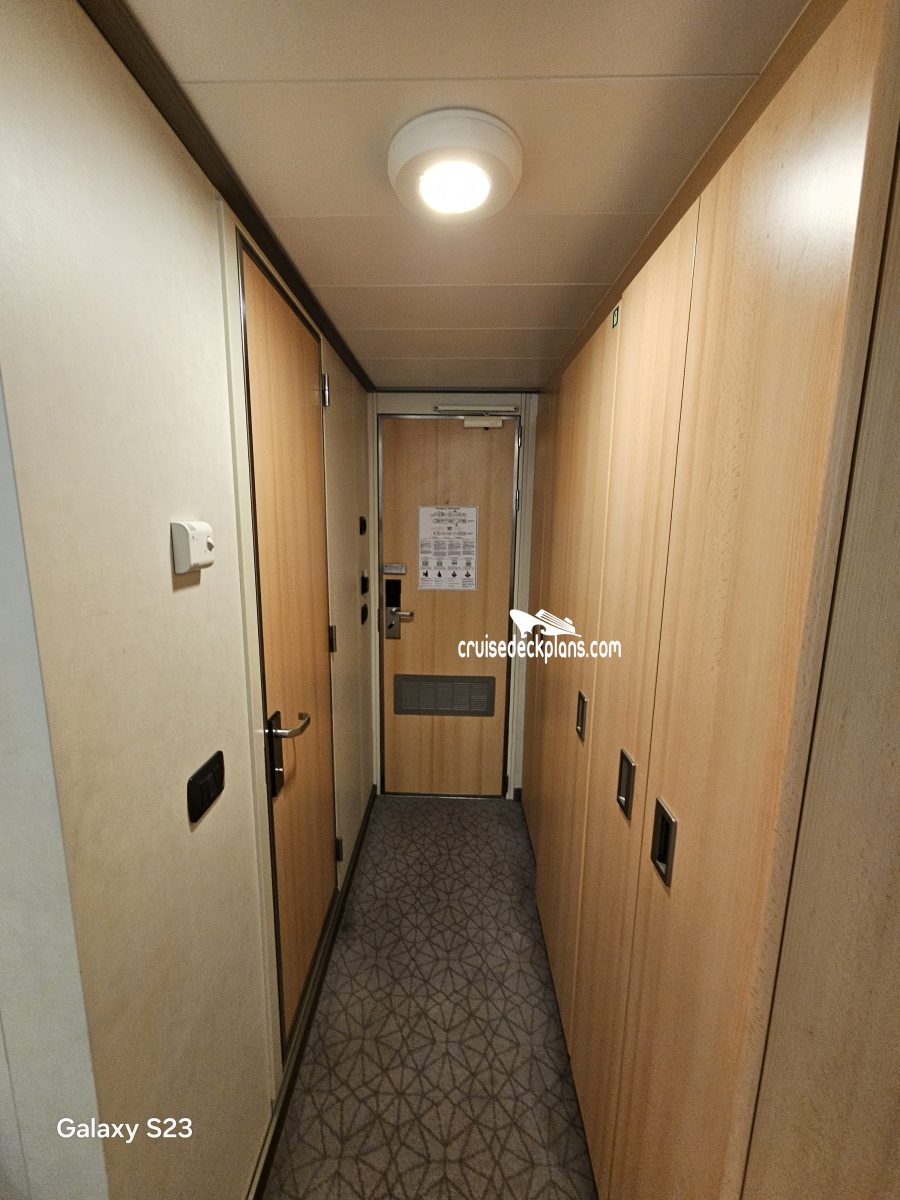 Cabin size ranges from 170 to 207 square feet. Category IA is 154 square feet. Staterooms IA10043 and IA10044 have fully obstructed windows.