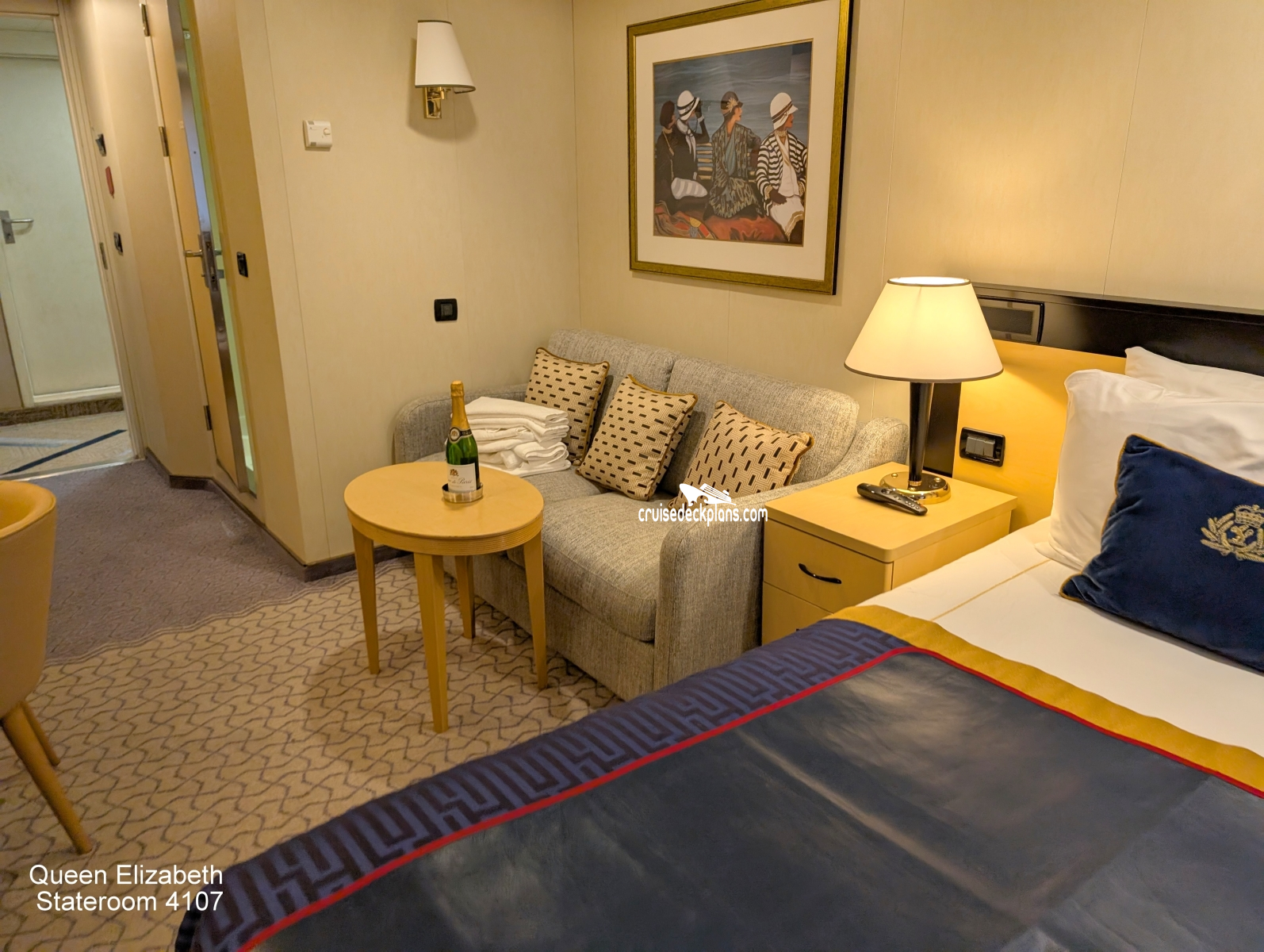 Click on a category below to go to that page. Stateroom cabin categories are simply the way that Cunard groups the different types of staterooms (cabins). You can see details and floor plans for all of the categories on Queen Elizabeth on this page.