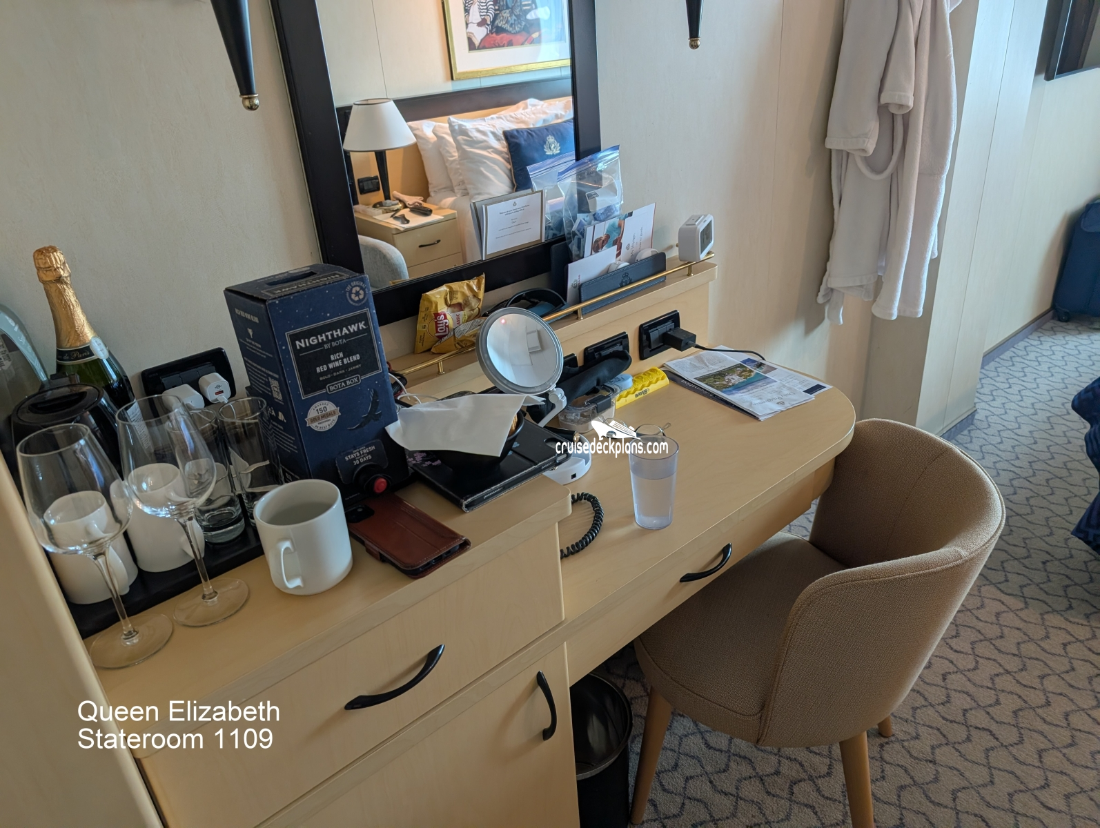 Queen Elizabeth Oceanview cabin location, stateroom cabin videos, stateroom cabin pictures, floor plans, diagrams, stateroom features and perks. Cruisedeckplans.com also provides links to actual stateroom cabin pictures and videos on this page. You can see details and floor plans for all of Queen Elizabeth's different stateroom cabin categories on the NEW cabins page.