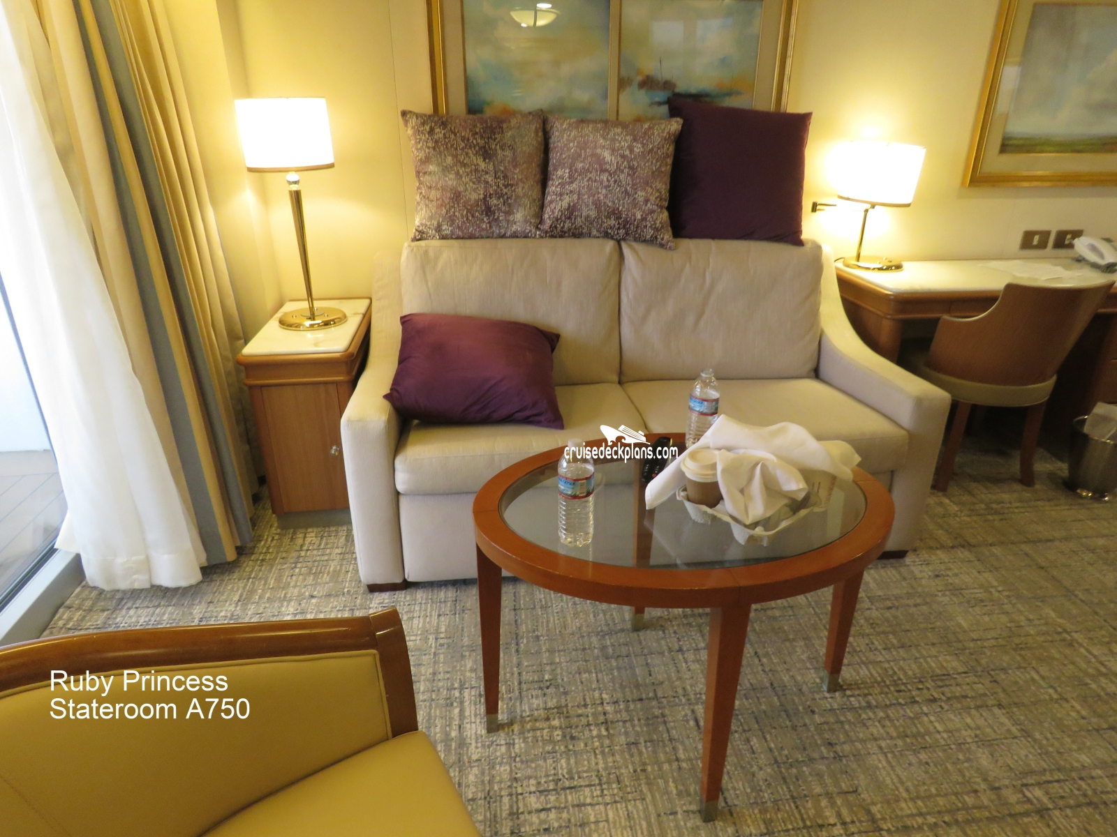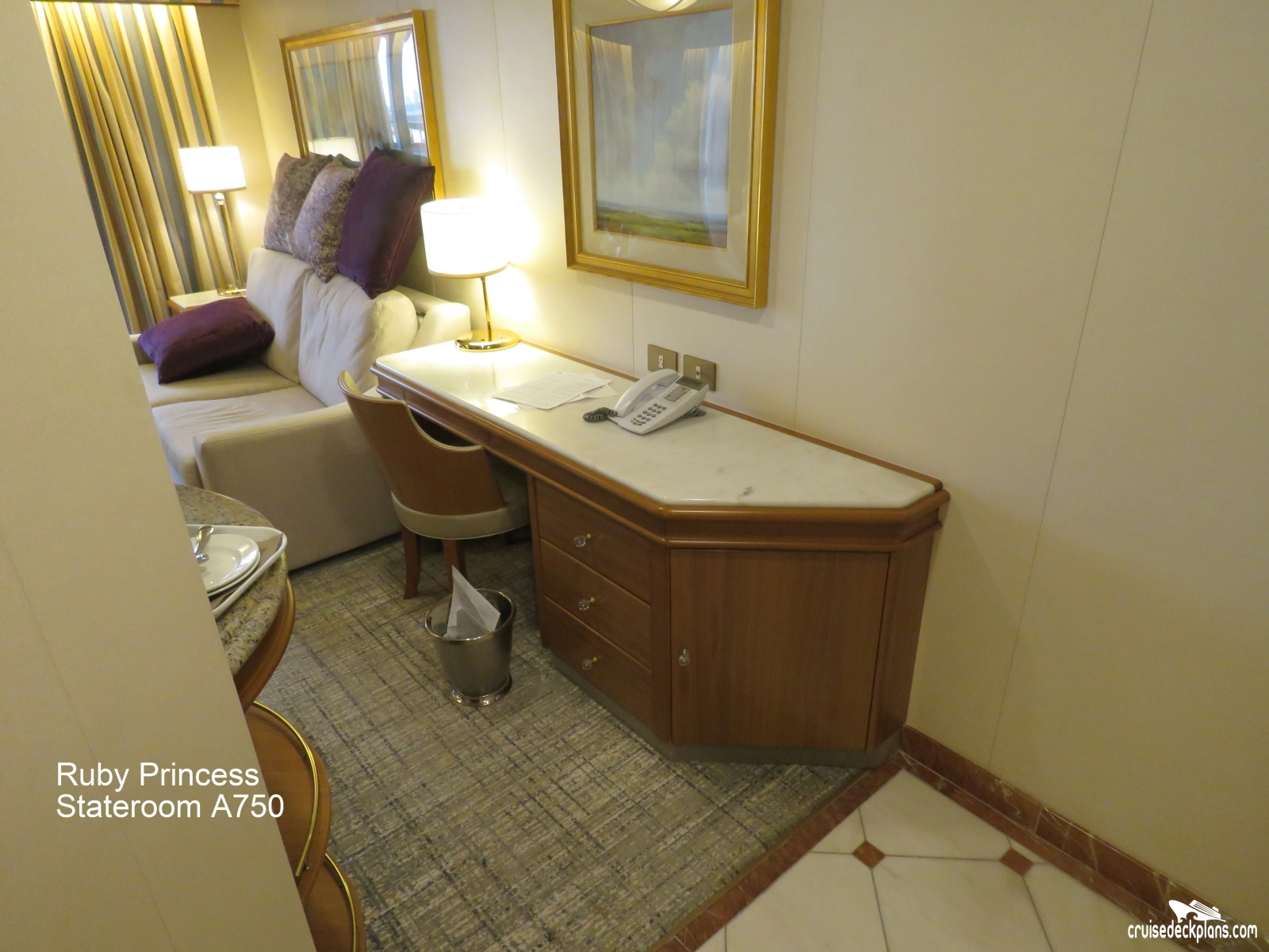 Ruby Princess Suite cabin location, stateroom cabin videos, stateroom cabin pictures, floor plans, diagrams, stateroom features and perks. Cruisedeckplans.com also provides links to actual stateroom cabin pictures and videos on this page. You can see details and floor plans for all of Ruby Princess's different stateroom cabin categories on the NEW cabins page.