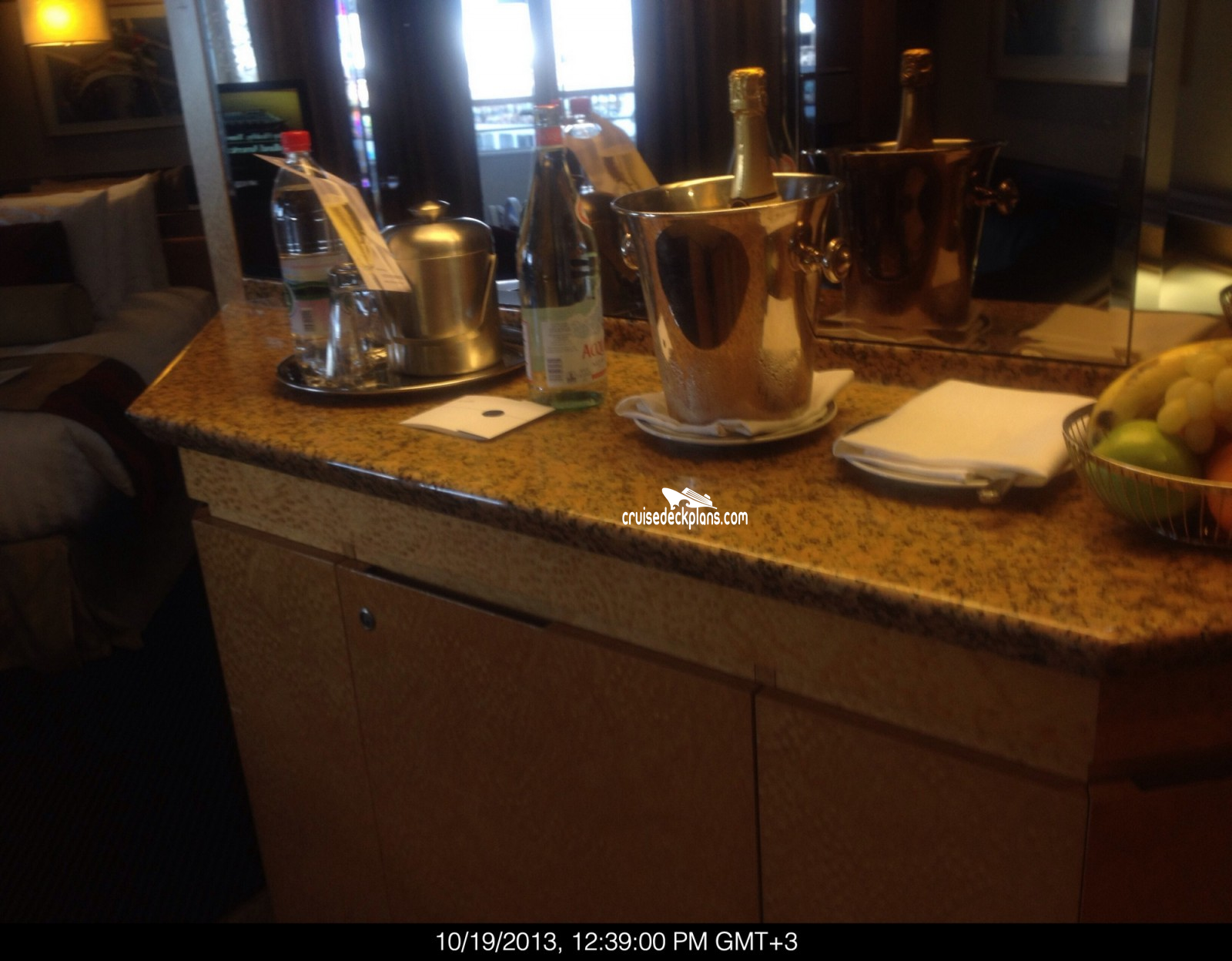 Concierge Service / Priority Check In / Priority Debarkation / Priority Tender Boarding / Afternoon Canapes / Afternoon Tea / Complimentary Shoe Shine / Welcome Champagne / Exclusive Lounge / Exclusive Full Breakfast Restaurant / Priority Dining Reservations / Complimentary Laundry / Thick Cotton Robes / Pillow Menu / Signature Mariner's Dream bed with plush euro-top mattress and finely woven cotton linens / Lighted magnifying mirrors / Massage showerheads / Salon-quality hair dryer / Elemis Aromapure bath products / Flat-panel TV and DVD player / complimentary DVD library / Personalized cruise stationary / Umbrella & binocular usage / Gorgeous corsages and boutonnieres for the first formal night / Cocktail party with ship's officers / Premium duvet / Complimentary bottled water at embarkation / Bose docking station / Complimentary mimosas with in-suite breakfast / In-suite coffee maker and espresso machine. /