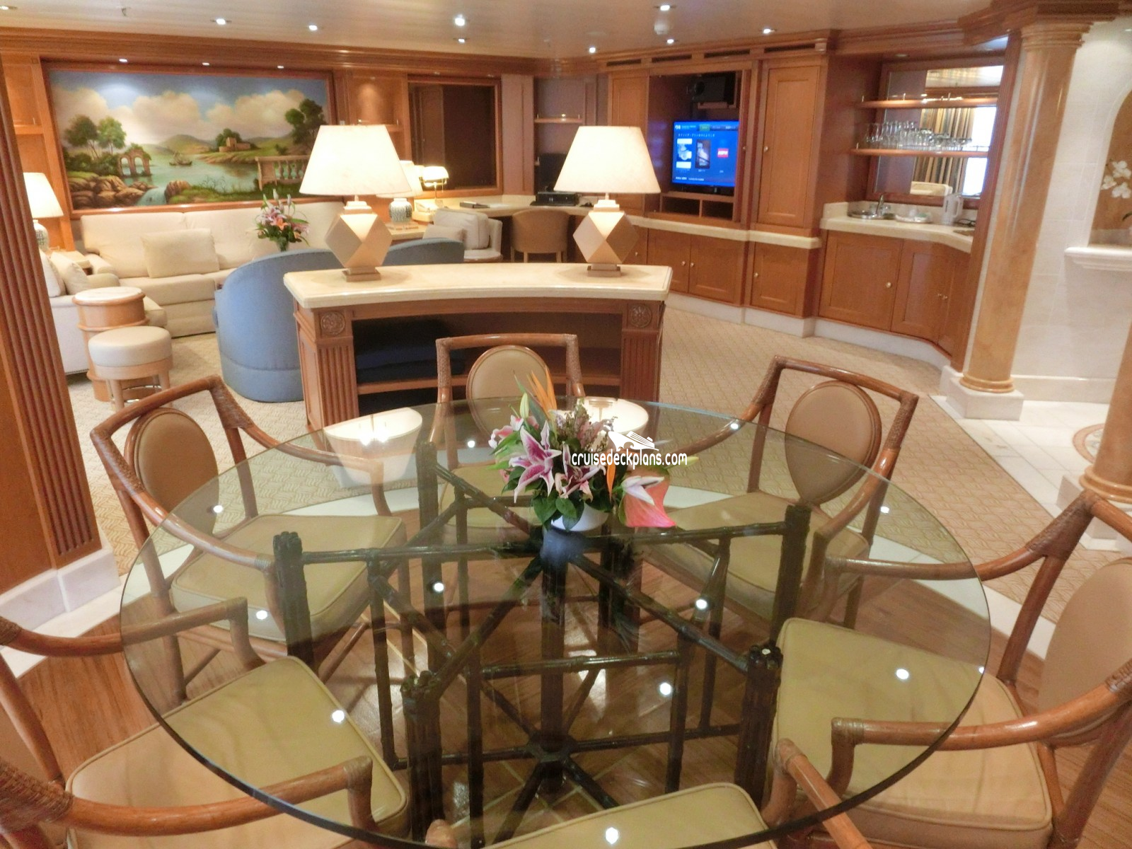 Priority Check In / Priority Debarkation / Priority Tender Boarding / Dining in the Stateroom / Afternoon Canapes / Afternoon Tea / Welcome Champagne / Exclusive Lounge / Exclusive Full Breakfast Restaurant / Priority Dining Reservations / Complimentary Laundry / Complimentary Photo(s) / Thick Cotton Robes / Pillow Menu / Upgraded balcony furniture including loungers, dining tables and chairs / complimentary mini-bar set-up / CD/DVD player with access to complimentary DVD library / Pillow-top mattress / Egyptian cotton high thread bed linens / fresh orchid in stateroom / upgraded bathroom amenities including bath salts and soothing gel eye mask / private lounge at the conclusion of the cruise / priority shore excursion reservations / priority line at service desk / use of Lotus Spa Thermal Suite / exclusive suite breakfast in Sabatinis (includes Mimosa) / exclusive elite lounge with hors d'oeuvres / extended room service menu with full menu offerings / complimentary cover charge for specialty restarants on embarkation evening / Chefs welcome goodies on embarkation day / complimentary flower corsage and boutonniere on first formal night / turndown service includes chocolate dipped stawberries or wrapped chocolates /