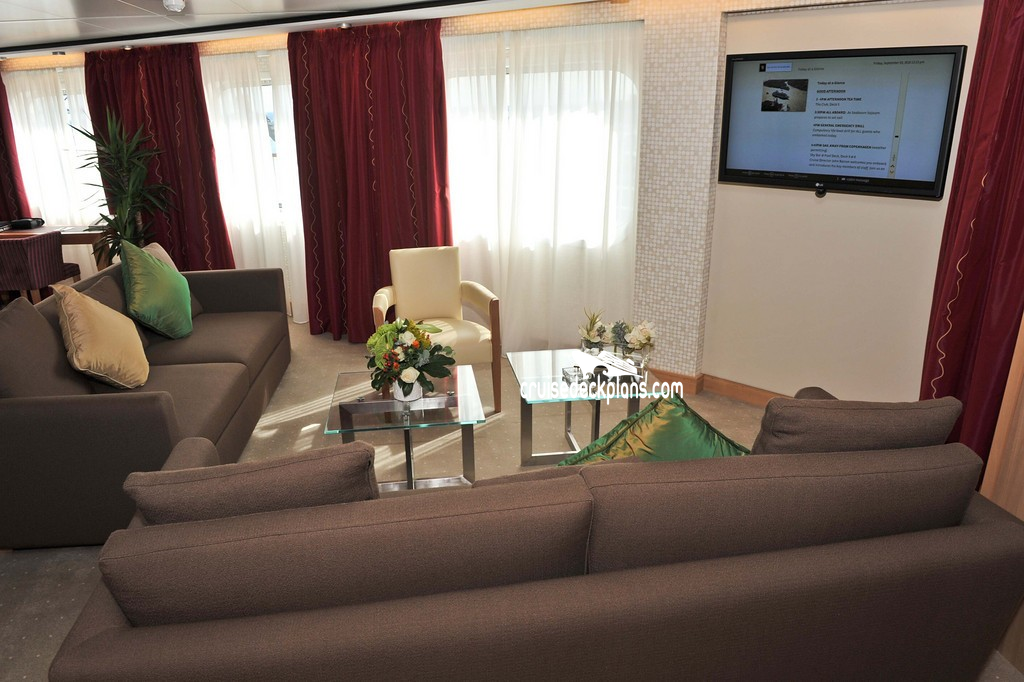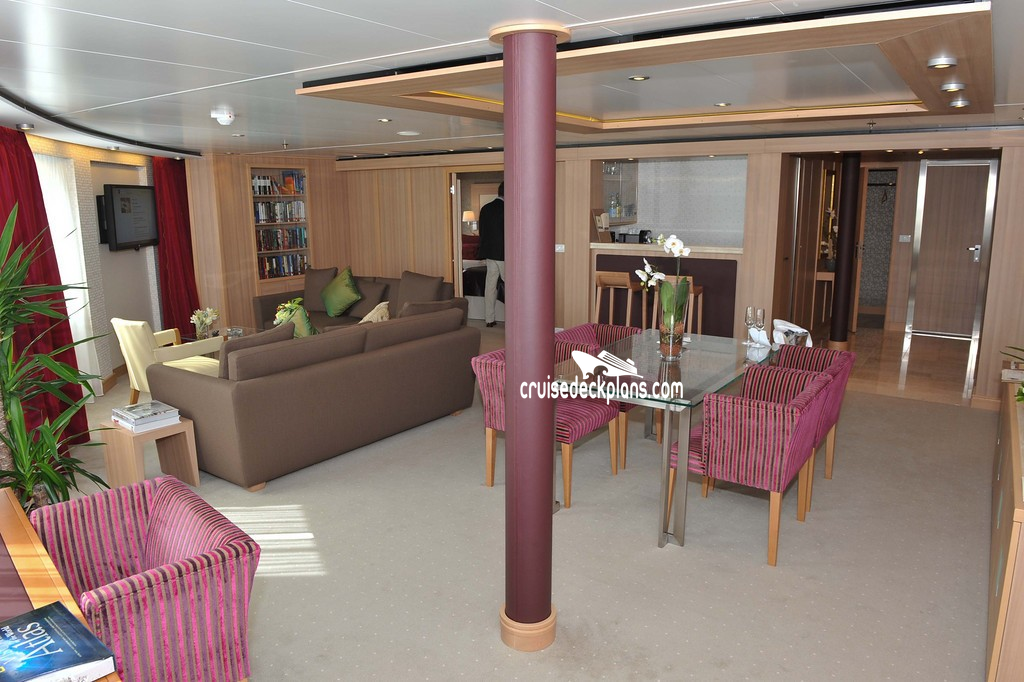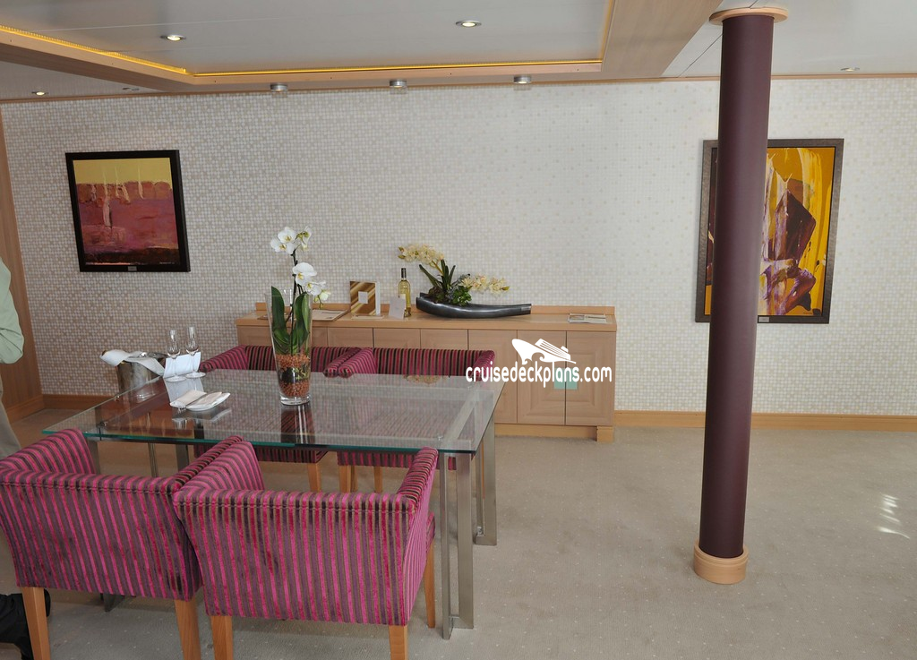 Seabourn Sojourn Signature Suite cabin location, stateroom cabin videos, stateroom cabin pictures, floor plans, diagrams, stateroom features and perks. Cruisedeckplans.com also provides links to actual stateroom cabin pictures and videos on this page. You can see details and floor plans for all of Seabourn Sojourn's different stateroom cabin categories on the NEW cabins page.