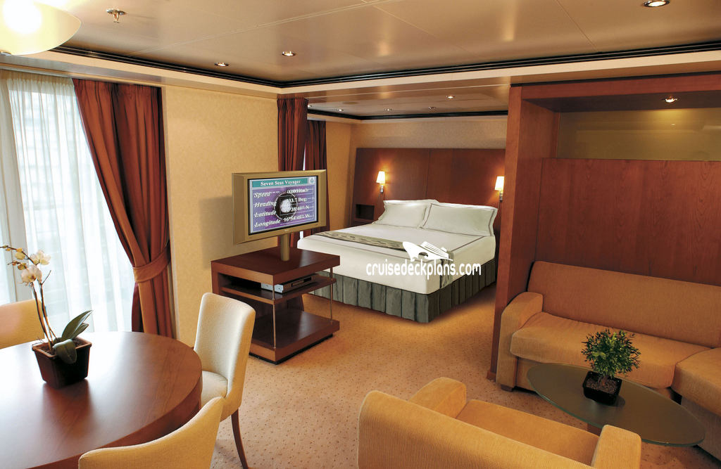 Seven Seas Voyager Seven Seas Suite cabin location, stateroom cabin videos, stateroom cabin pictures, floor plans, diagrams, stateroom features and perks. Cruisedeckplans.com also provides links to actual stateroom cabin pictures and videos on this page. You can see details and floor plans for all of Seven Seas Voyager's different stateroom cabin categories on the NEW cabins page.