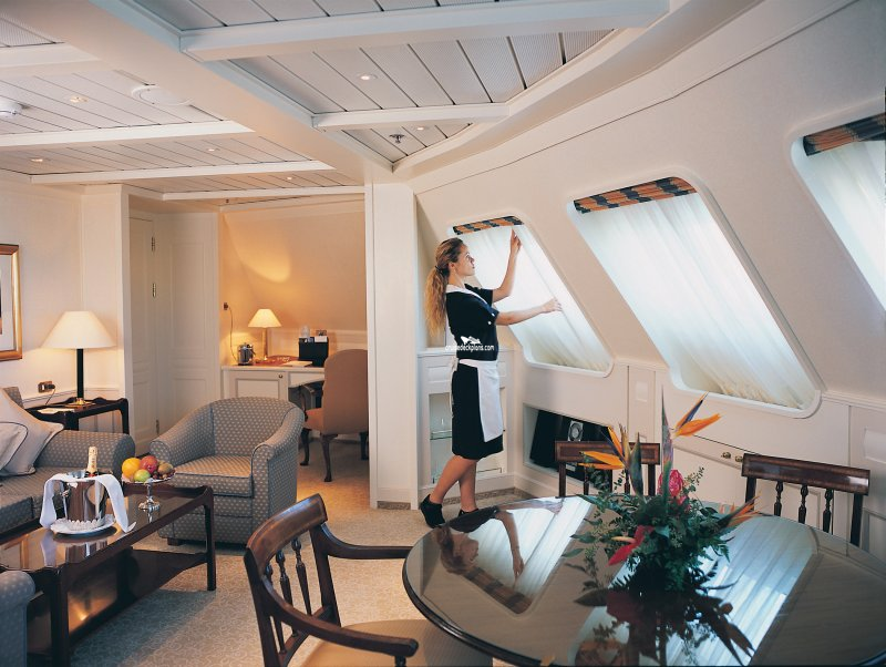 Silver Cloud Royal Suite cabin location, stateroom cabin videos, stateroom cabin pictures, floor plans, diagrams, stateroom features and perks. Cruisedeckplans.com also provides links to actual stateroom cabin pictures and videos on this page. You can see details and floor plans for all of Silver Cloud's different stateroom cabin categories on the NEW cabins page.