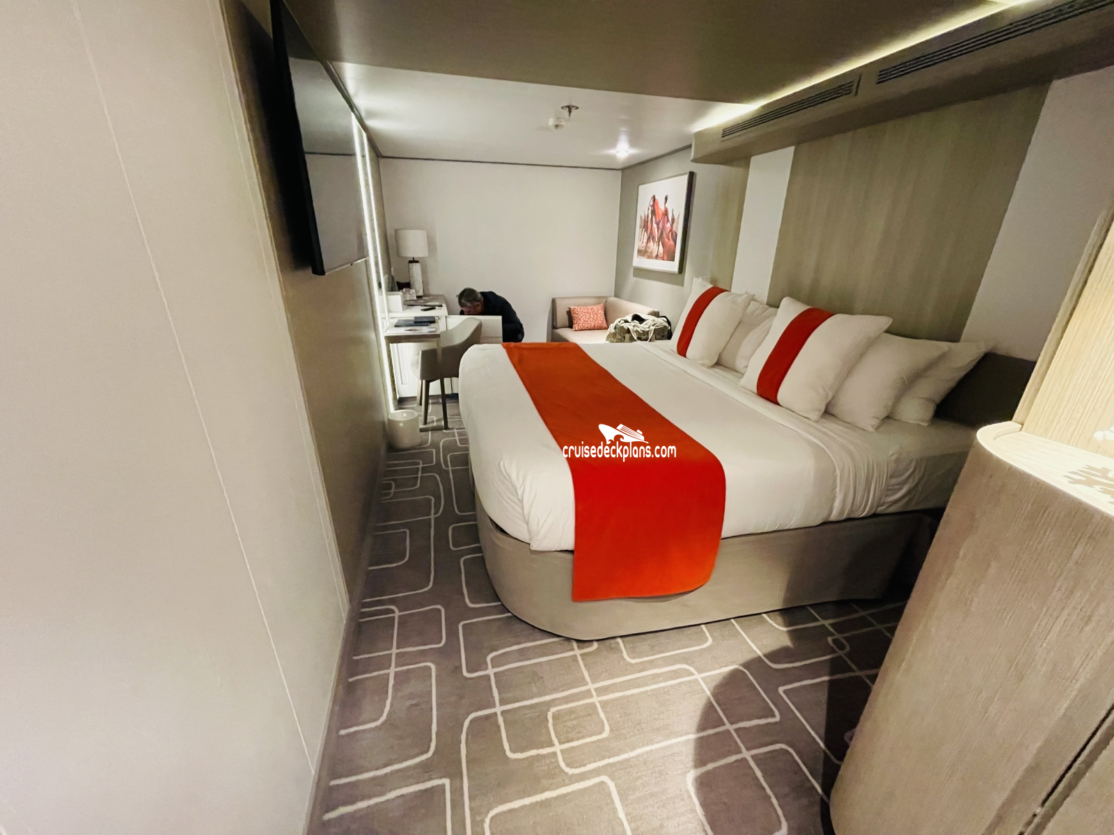 Category 12 interior cabins are 181 square foot. Accessible interior cabins are 231 square foot.