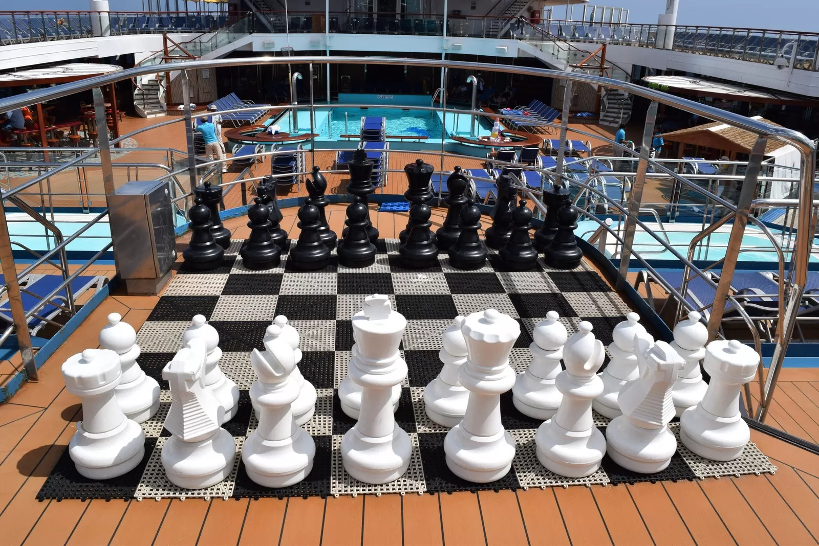 Deck above main pool area with places to walk and lounge.Cabin Check Tool