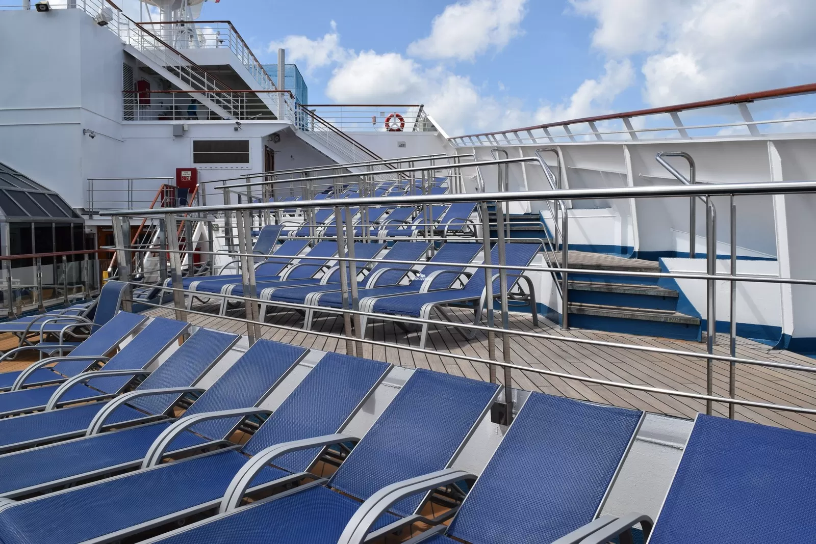 * There is a deck above the bridge that passengers sometimes walk out on. They are able to view the first few balconies on each side of the ship from that deck.