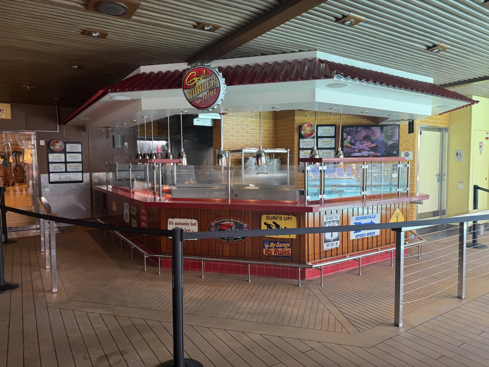 Carnival has teamed up with best-selling author, restaurateur and Food Network personality Guy Fieri to bring all the authentic appeal of a roadside burger shack to Guys Burger Joint, the cool poolside spot for hot burgers and hand-cut fries. Typically open from noon to 6:00 p.m.Pizzeria del Capitano