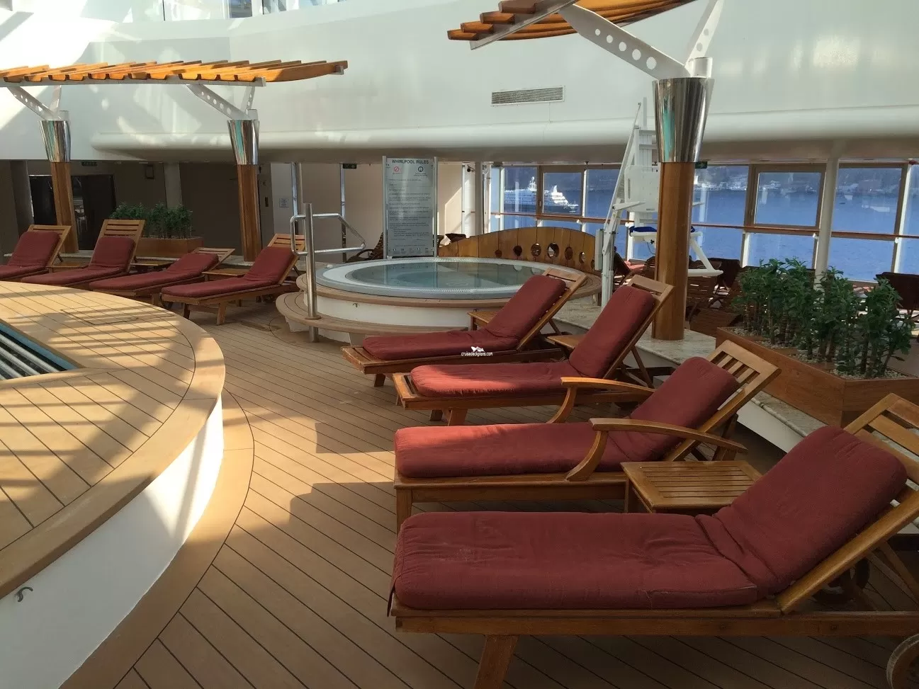 The ship's additional charge thermal suite that includes a eucalyptus infused steam room, sauna, rain shower and heated ceramic loungers to relax on.Solarium
