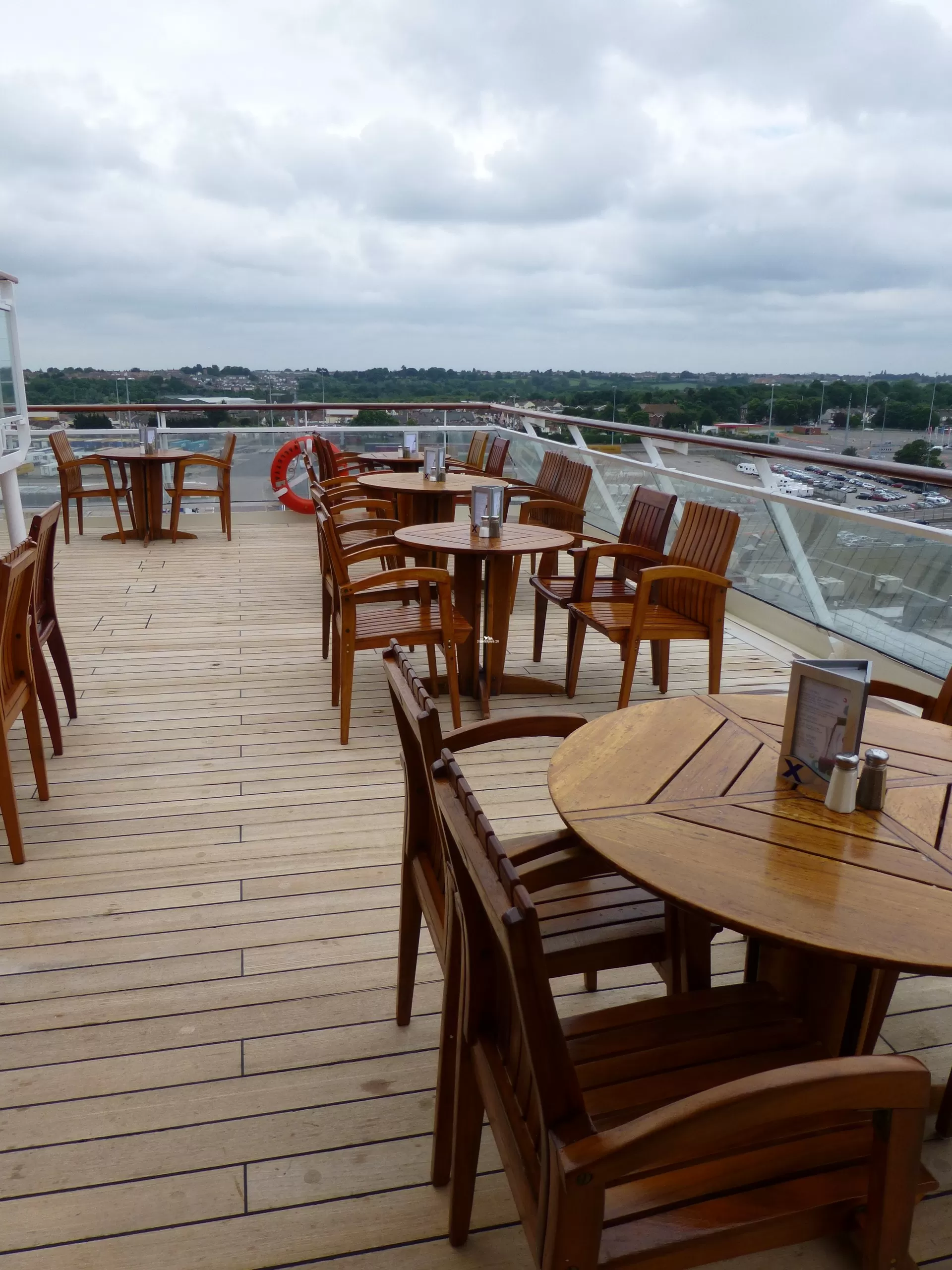 Outside bar and terrace for the Oceanview Cafe and Grill.Cabin Check Tool