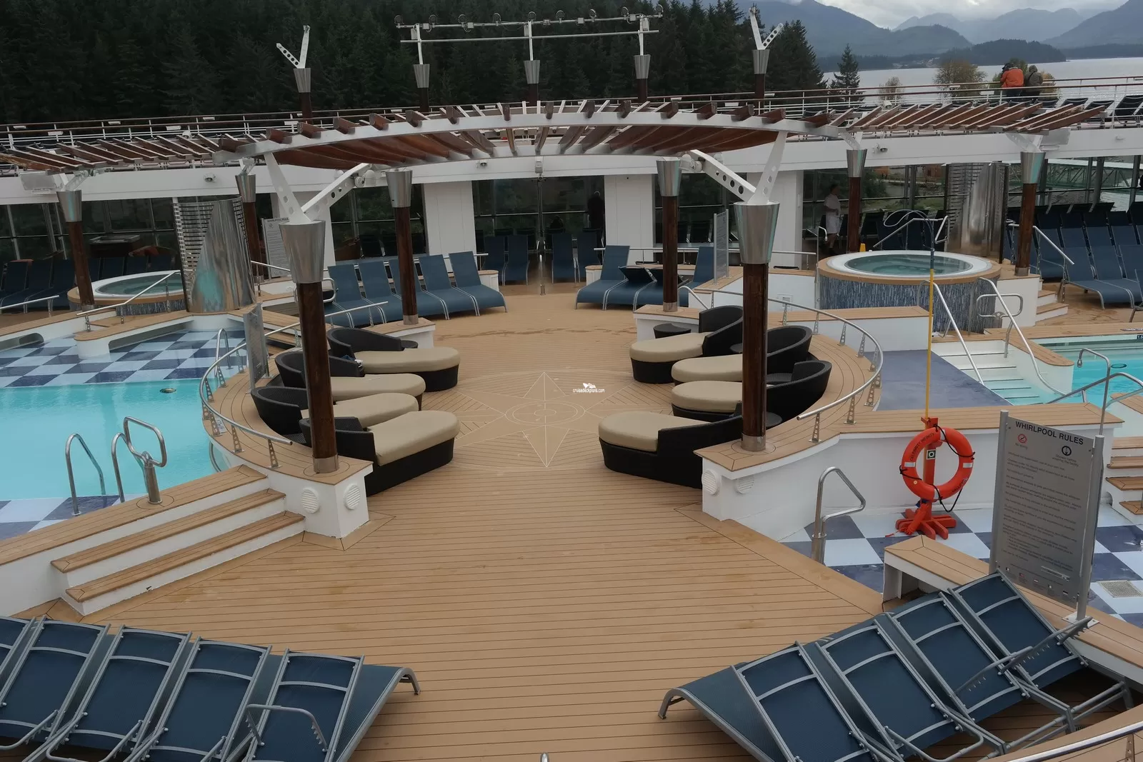 This tool will help you see what is on the deck above and the deck below your stateroom. Don't be surprised by loud chair scraping noise above you.