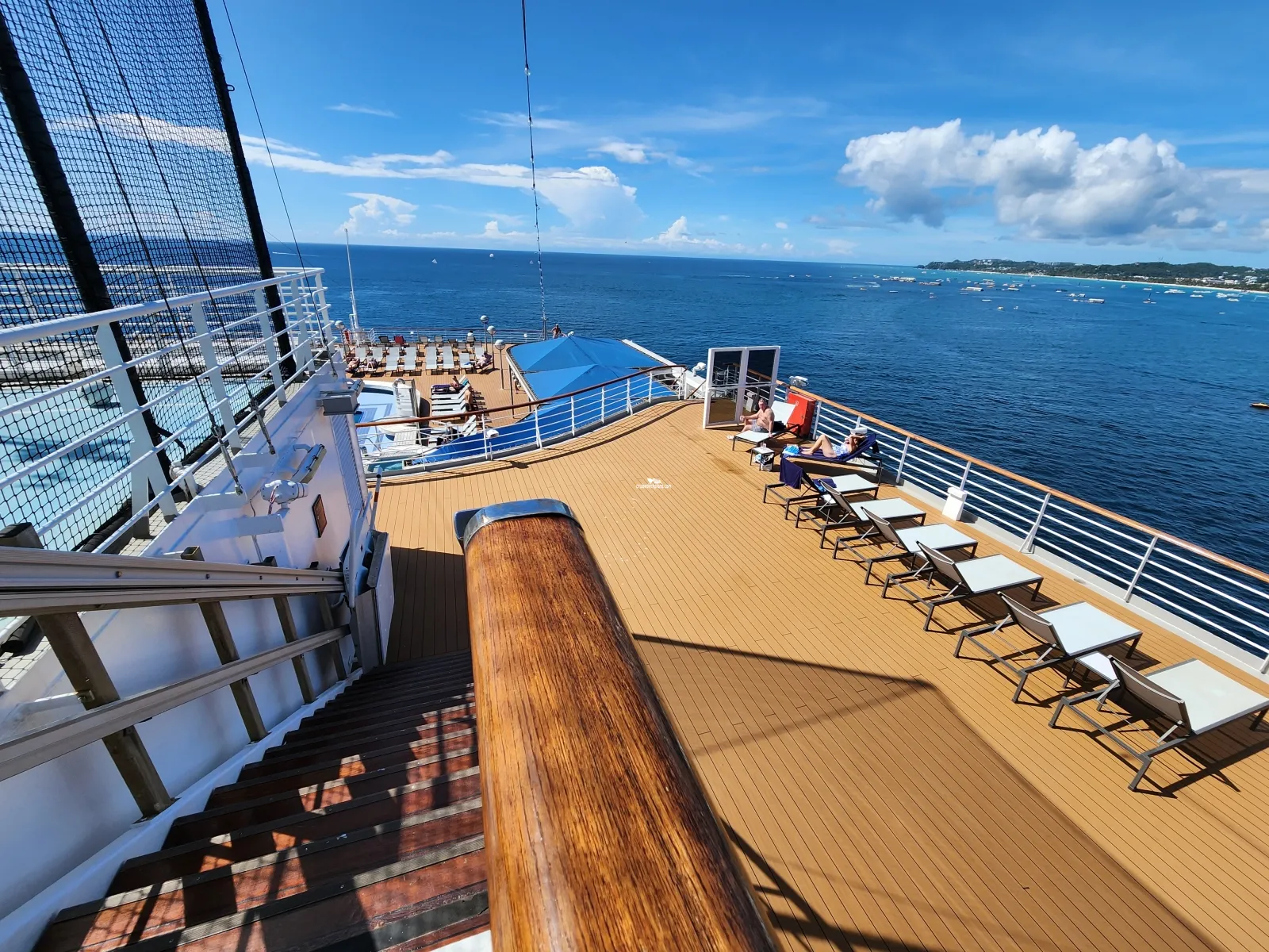 Observation deck walk way with shuffle board, places to stroll and lounge.Cabin Check Tool