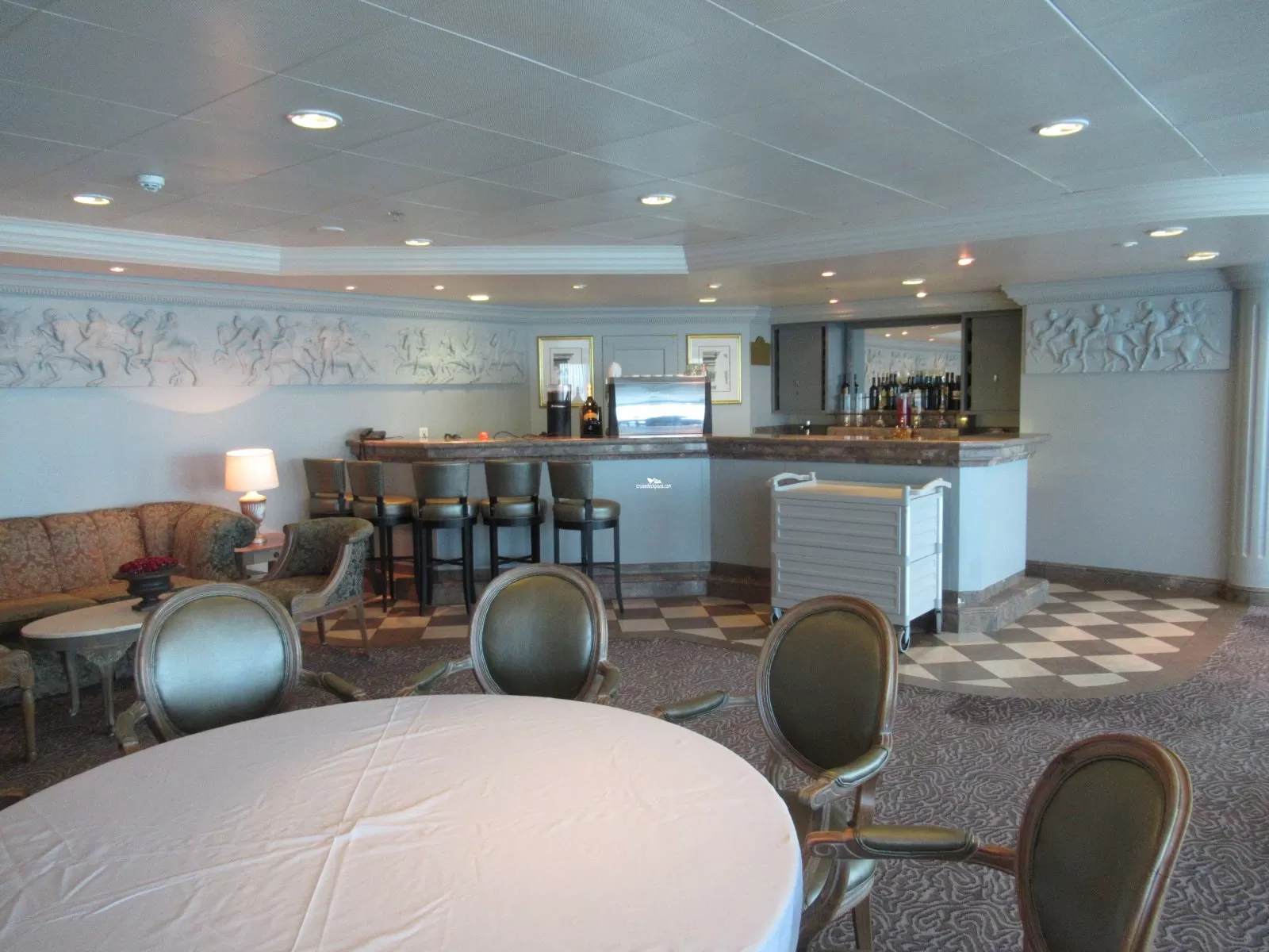 The ship's second select dining room. Open from 6.30pm to 11pm, guests can choose from a range of appetizers, soups and salads, seafood or steak and dessert.Library