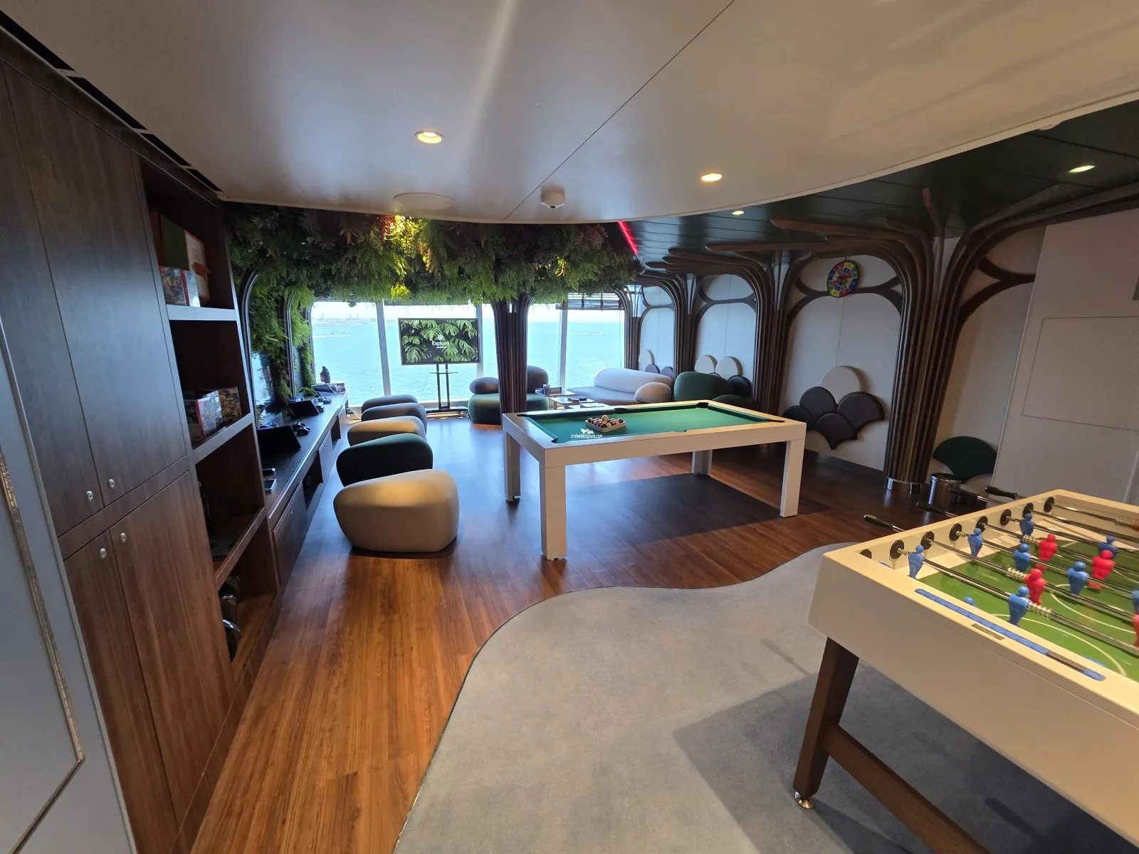 Competitive youngsters will find an outlet in a foosball and multi-game table, plus an ultra-contemporary pool table, made by luxury Italian design company MBM Biliardi. When they feel like chilling out with new friends, there is a jukebox tablet connected to streaming platforms such as Spotify and Apple, a wide selection of board games, and a multilingual digital library with books offering a variety of genres.Conservatory Pool & Bar