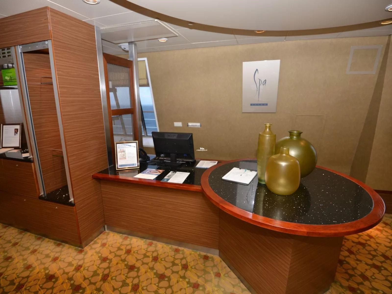 Spa covering 5,790 square feet. Includes relaxation area, treatment rooms, saunas, steam room, beauty salon.Cabin Check Tool
