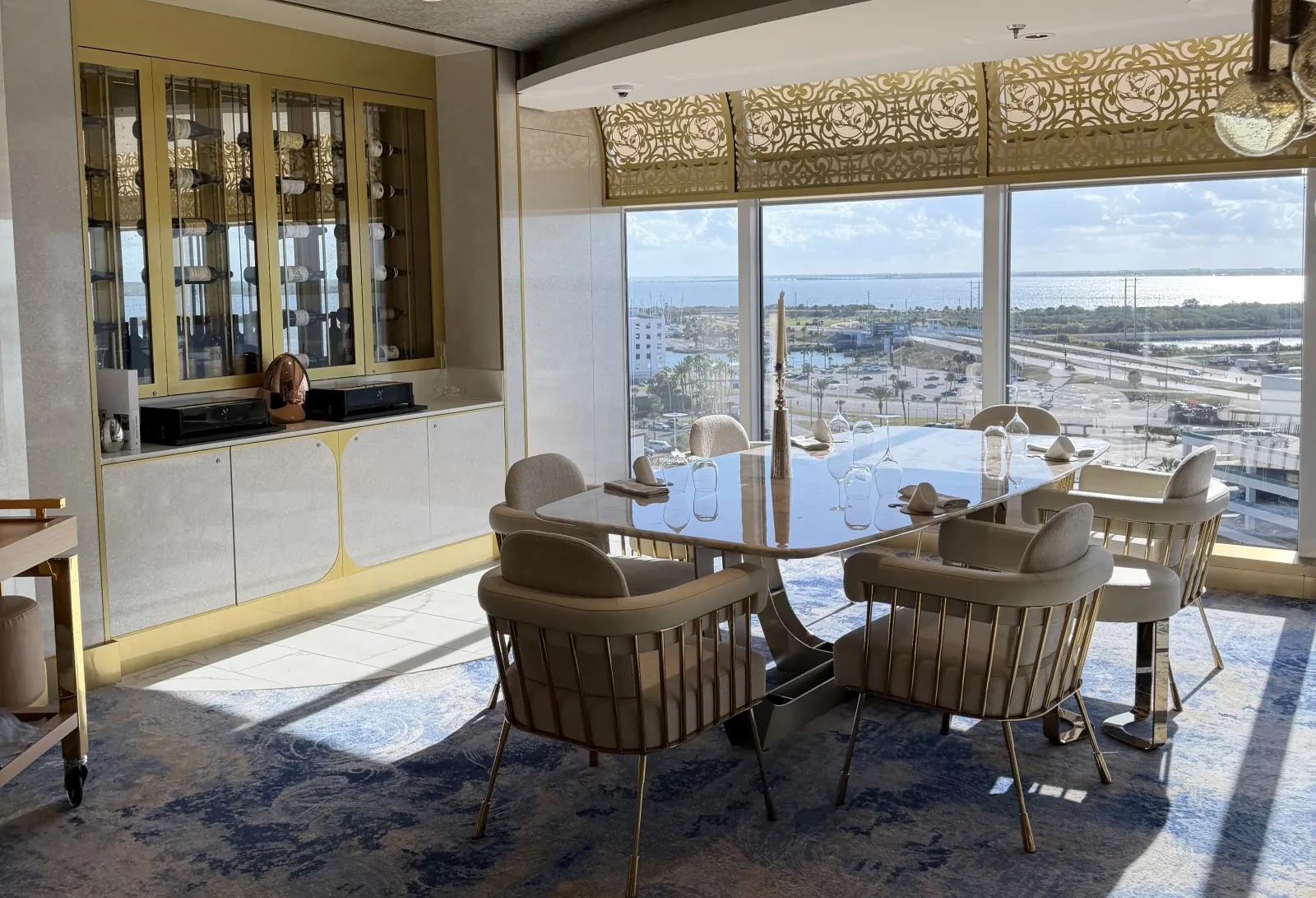 Adult exclusive lounge serving cocktails. Inspired by the enchanted castle from Beauty and the Beast. Featurs antique mirrors and rose petals.Vibe