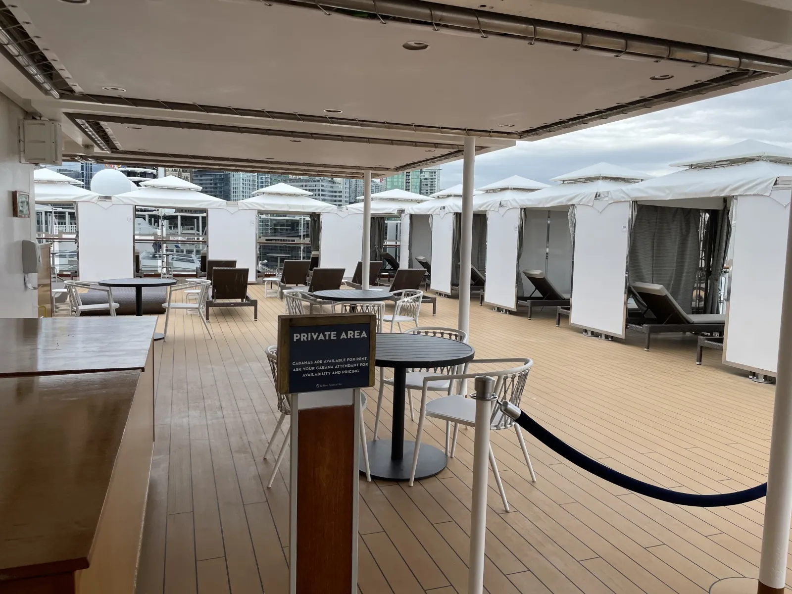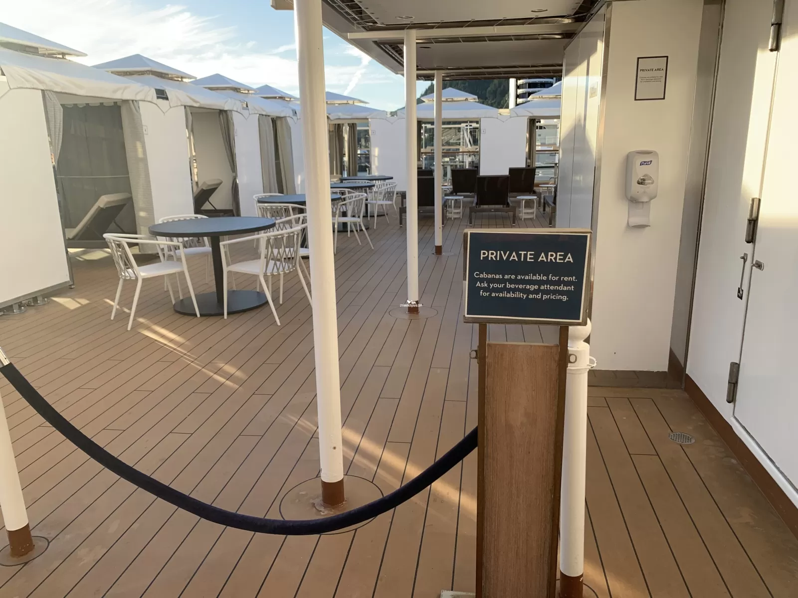 Adult only area with private cabanas and lounge chairs.Cabin Check Tool