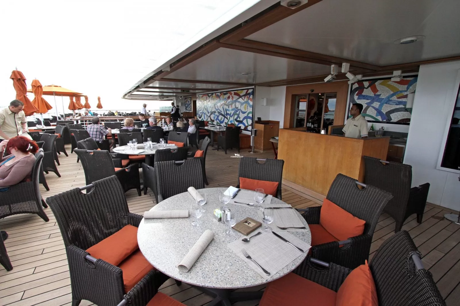 Can accommodate 24 passengers and offers wine tastings during the day and a seven-course wine pairing dinner with premium wines (wines are NOT included in the cover charge) in the evening. A cover charge of $75 per person applies, plus an 18% gratuity and reservations are required.Terrace Cafe