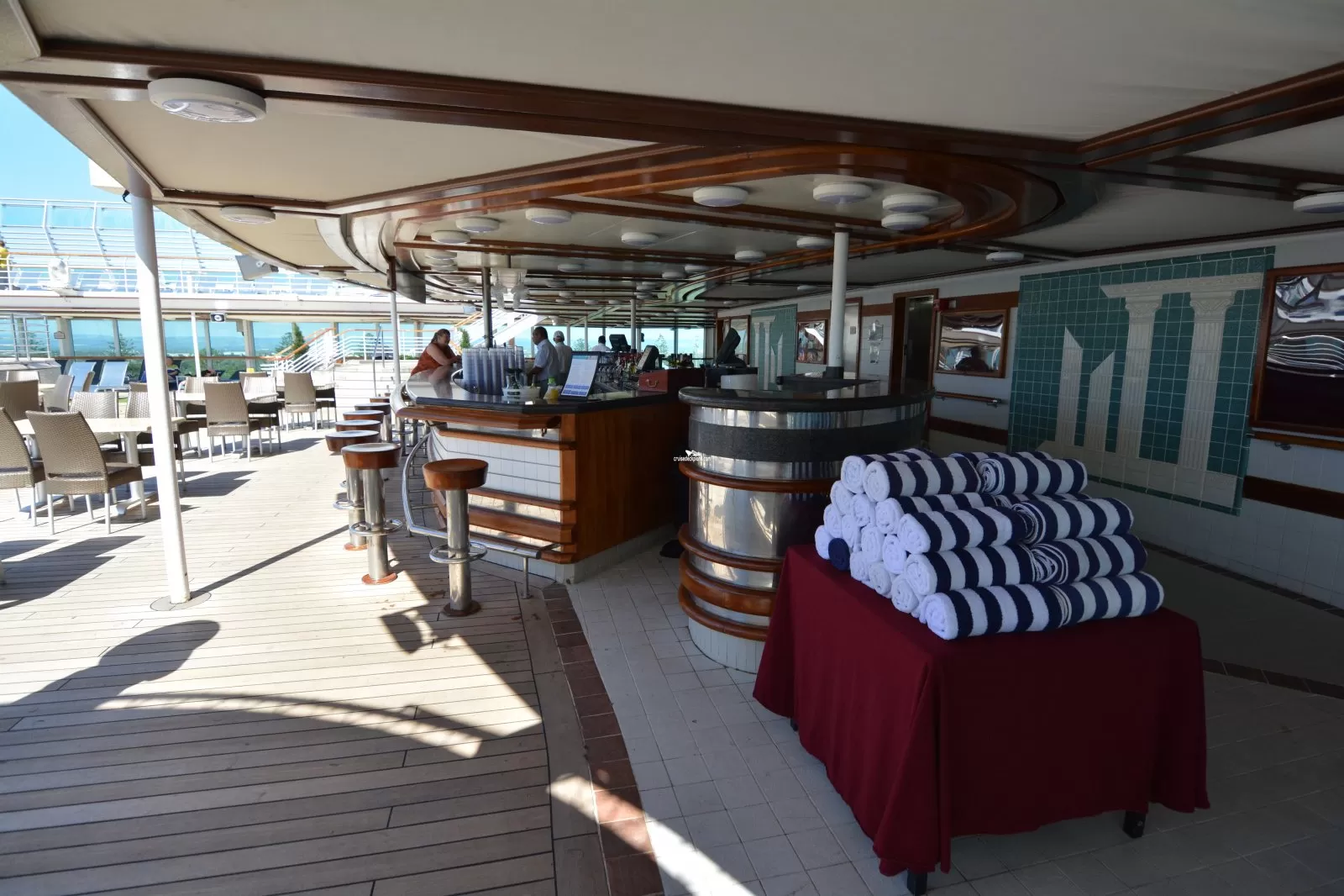 Main pool area with 2 pools and 3 hot tubs. Has its own bar (The Riviera Bar).Sundaes Bar