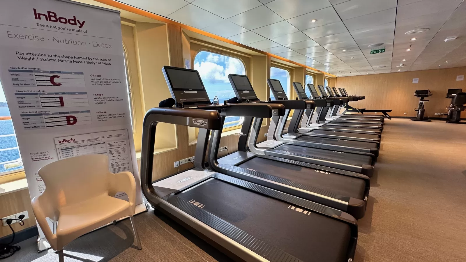 Fitness center with floor-to-ceiling panoramic windows. Also includes a exercise room for aerobics and a weight room.Aurora Spa