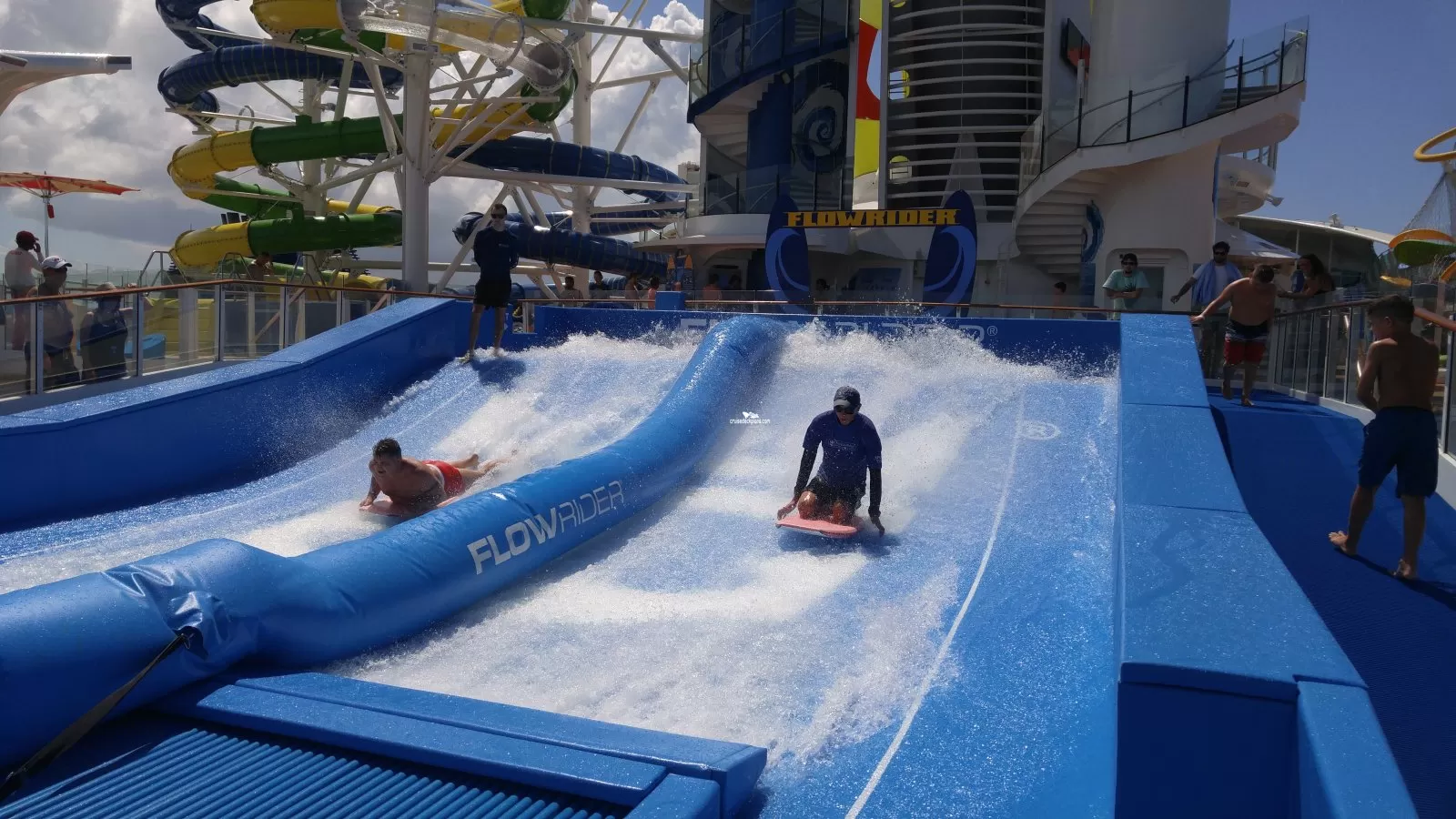 The ships surf simulator where guests can try out boogie boarding or surfing.Perfect Storm